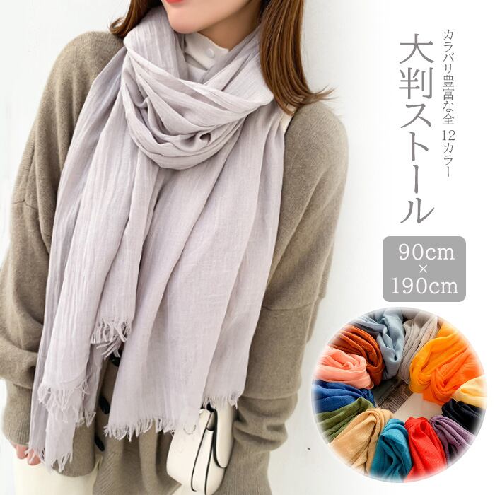 カラバリ豊富な全12カラー 大判ストール 90cm×190cm