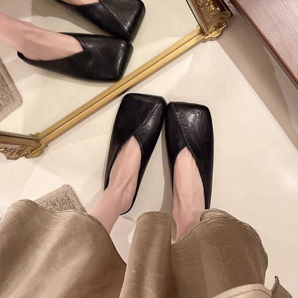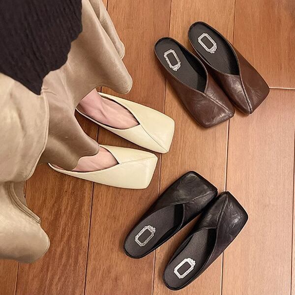トゥ先がポイントとなり足長効果も期待 スクエアトゥミュール