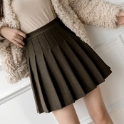 生地は見ためウール調で、裏地は柔らかくてさらりとした素材で着心地も快適のミニプリーツスカート
