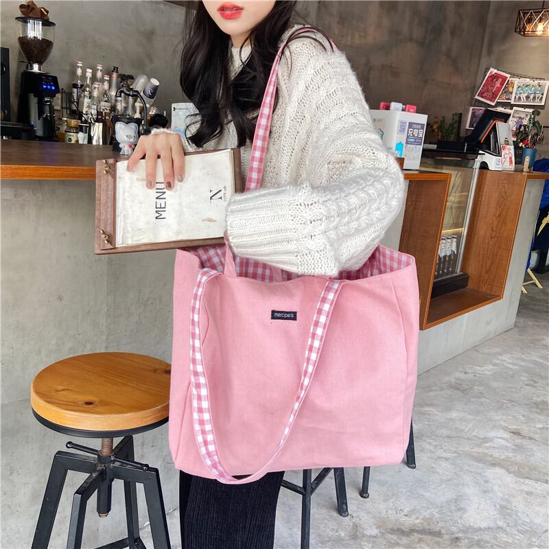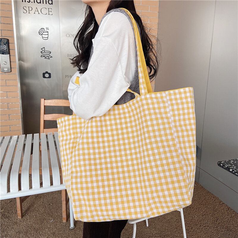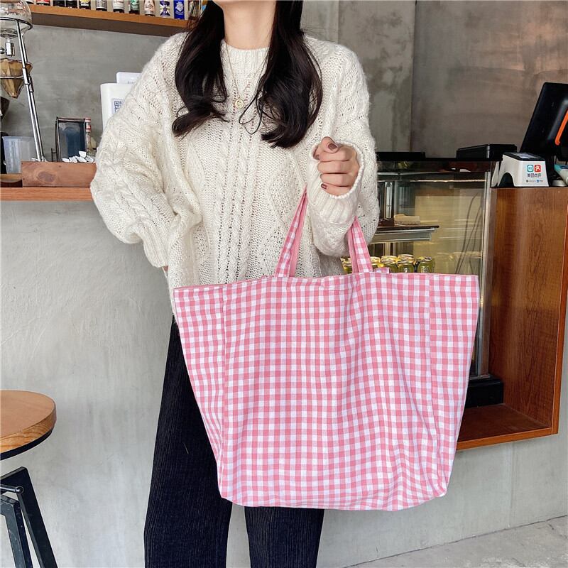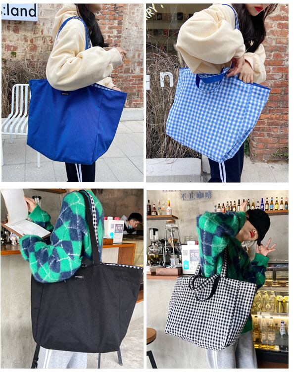 【海外からの取り寄せ】2021春夏新作 ラージ エコバッグ マルシェ トート ショルダー リバーシブル ギンガムチェック #[bag387_9800]【送料込み】【250907】