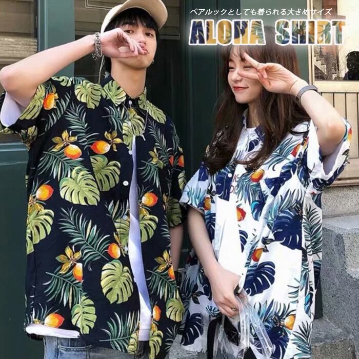 ペアルックとしても着られる大きめサイズのアロハシャツ