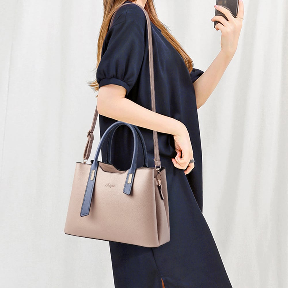 バイカラー 3way 斜めがけバッグ 大容量 ハンドバッグ 大人女子 PUレザーかばん オフィスカジュアル 肩掛けかばん