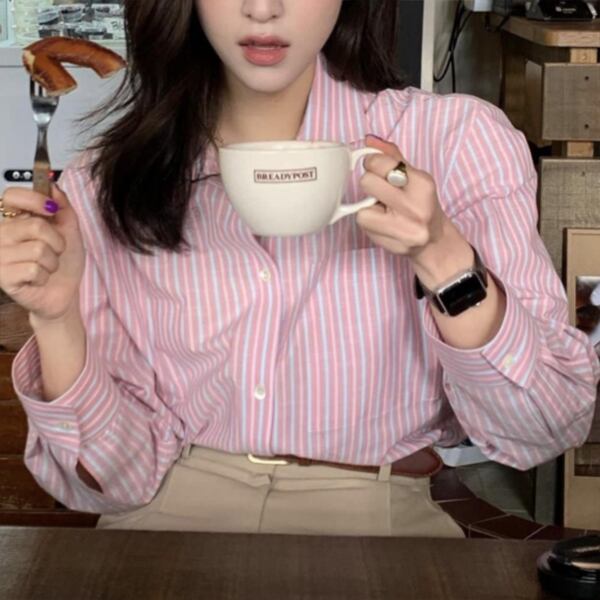 【海外からの取り寄せ】 2025新作 ストライプシャツ ブラウス トップス ベーシック カジュアル 襟付き 長袖 #[shirt456_13800]【送料込み】【250704】