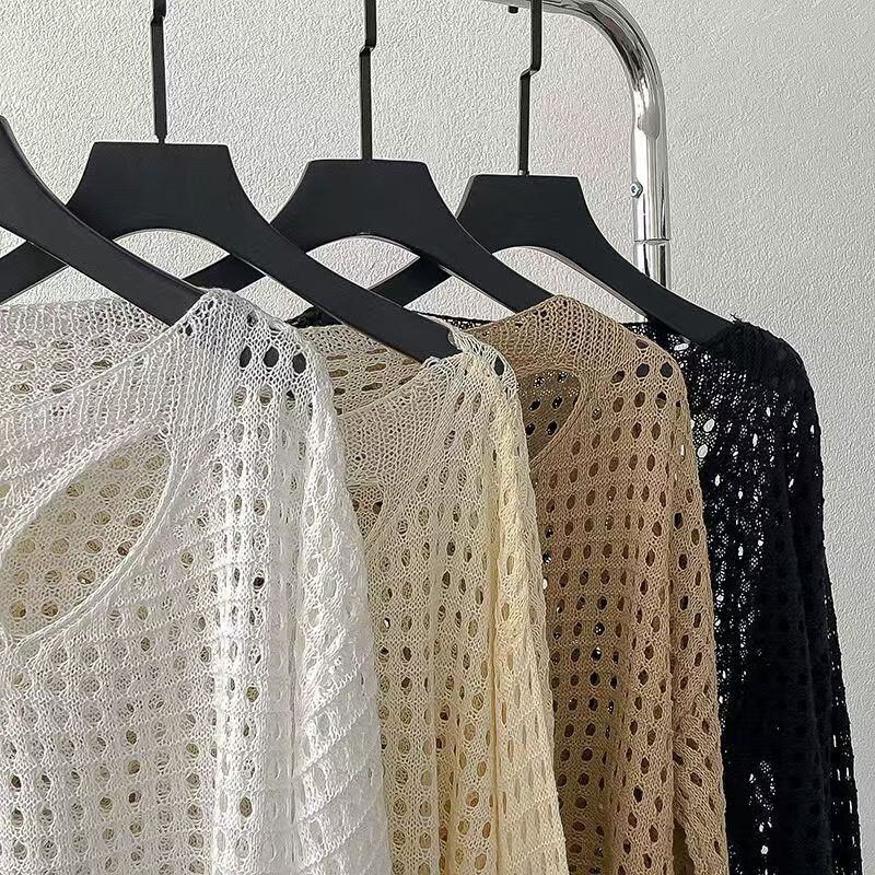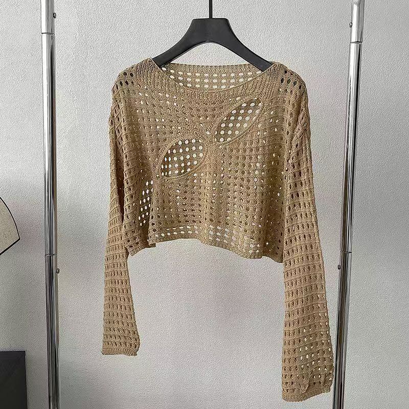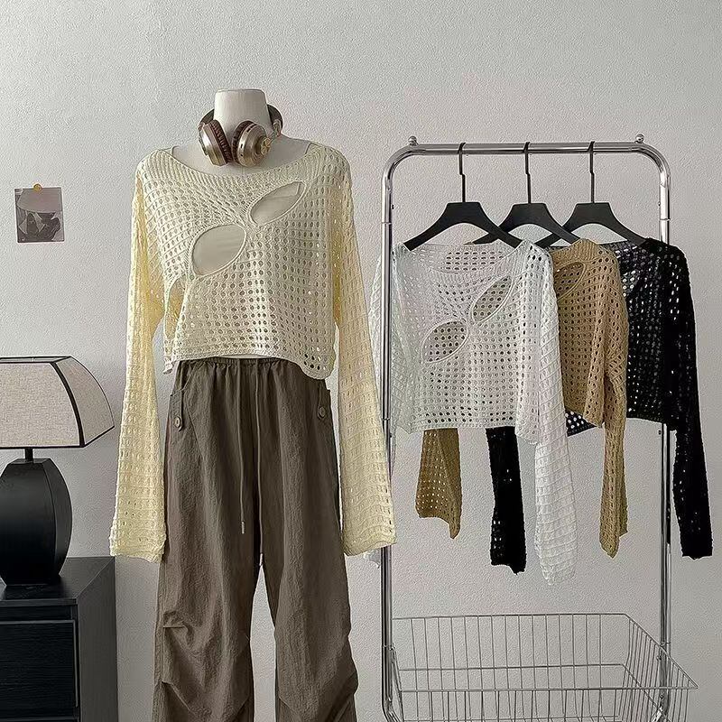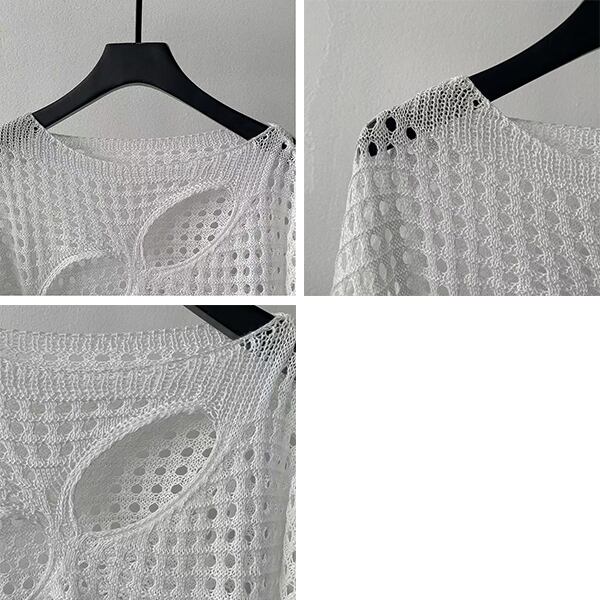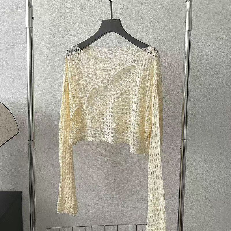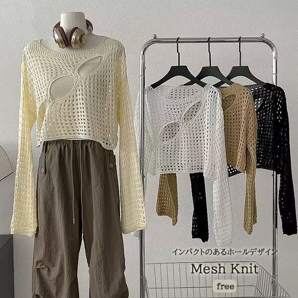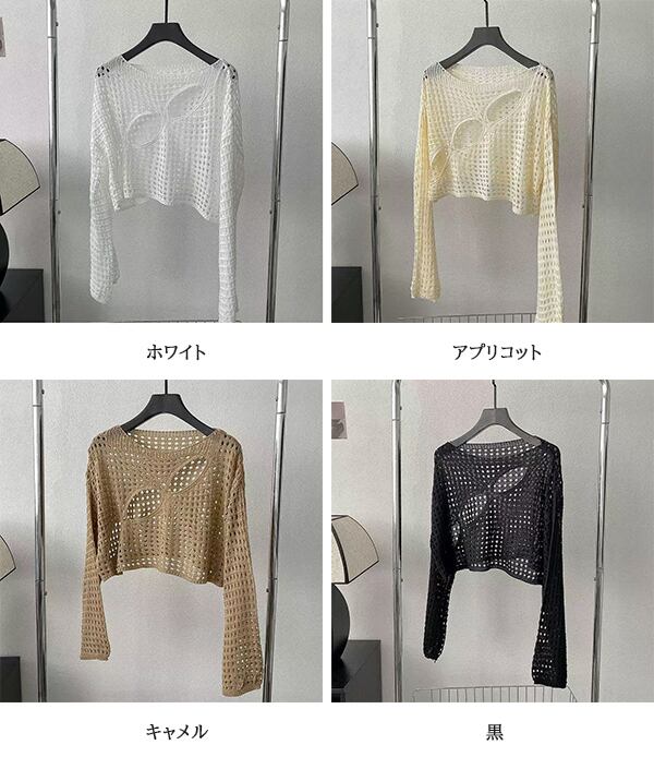 【海外からの取り寄せ】 2025新作 カットアウト ホールデザイン カギ編み 透かし編み ニット 長袖 ショート丈 #[tops575_11800]【送料込み】【250712】