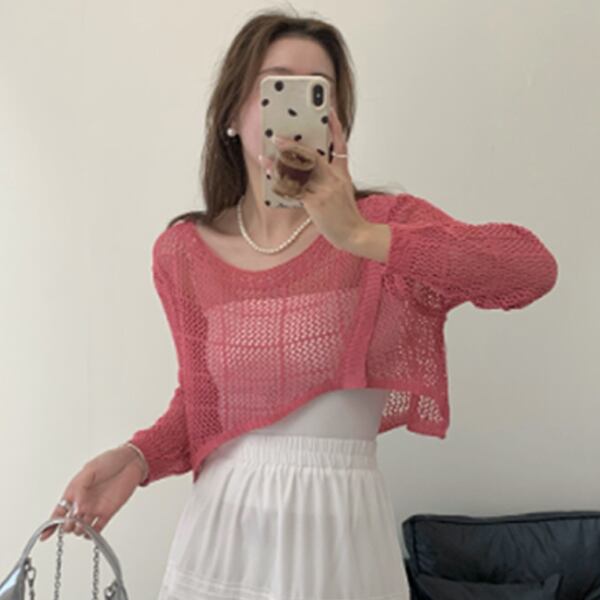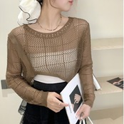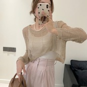 【海外からの取り寄せ】 2025新作 透かし編み ニット 長袖 カギ編み 透け感 抜け感 ショート丈 サマーニット #[tops574_12800]【送料込み】【250712】
