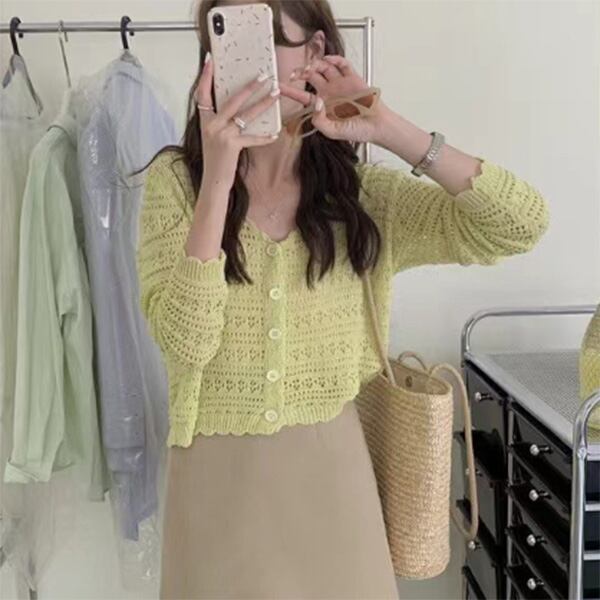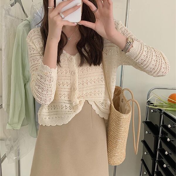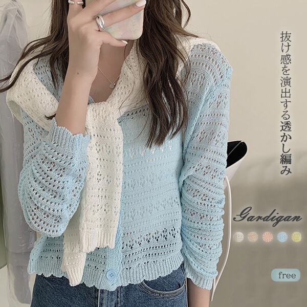 【海外からの取り寄せ】 2025新作 透かし編み ニット カーディガン サマーニット セーター 長袖 カギ編み 透け感 #[cardigan187_9800]【送料込み】【250712】