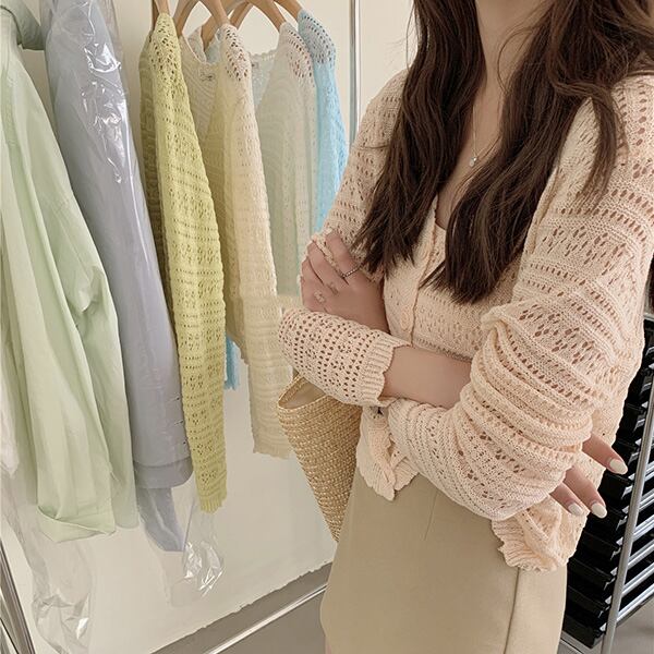 ・大人の抜け感を演出してくれる透かし編みカーディガン。