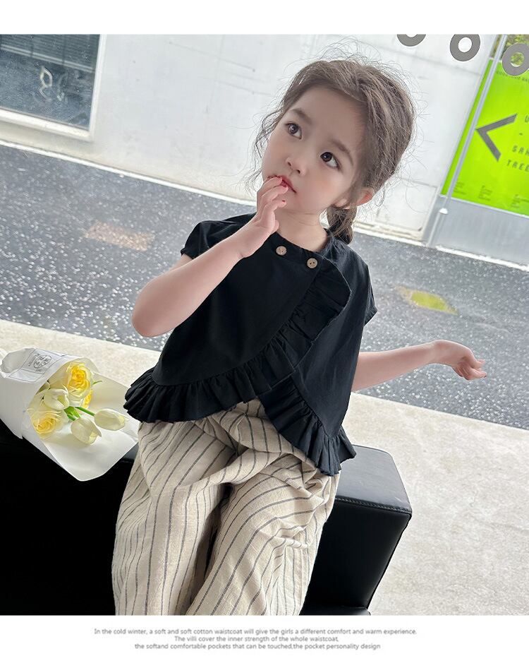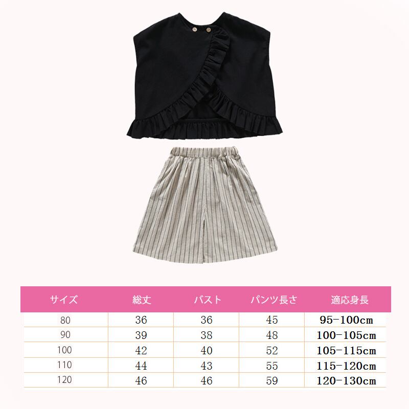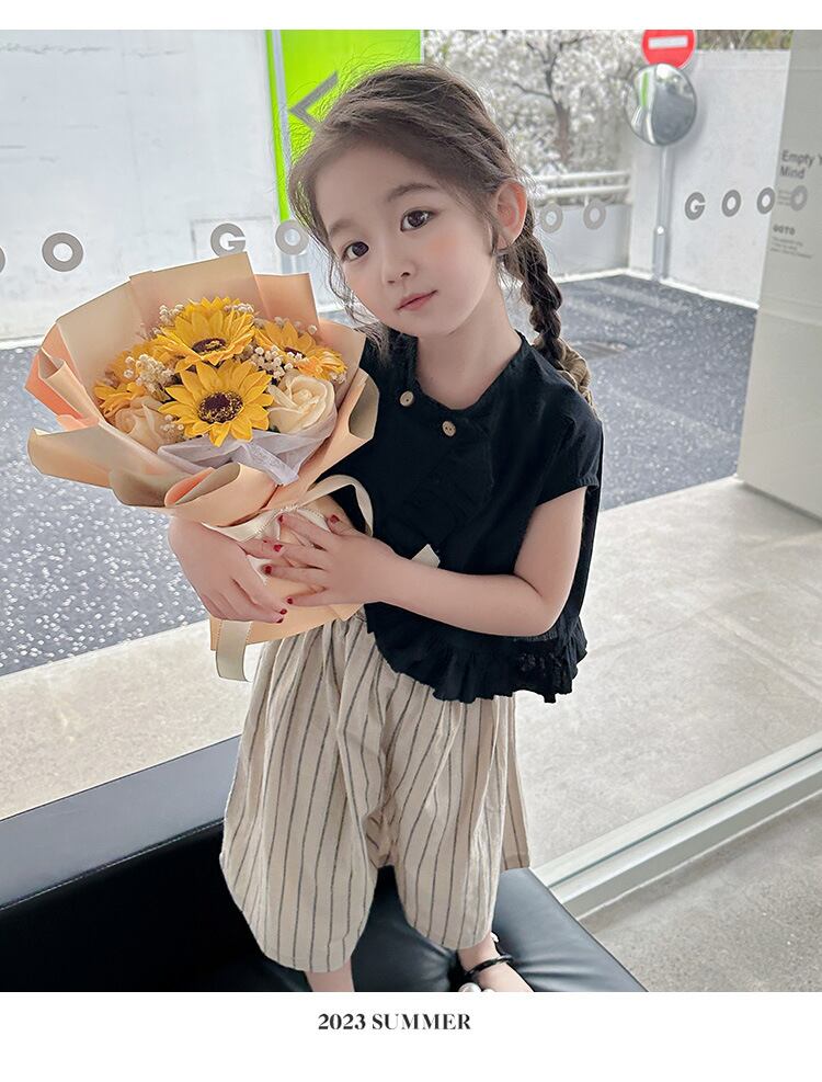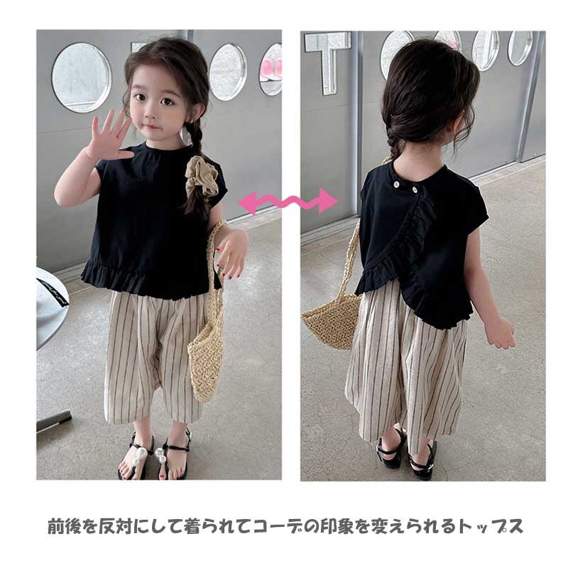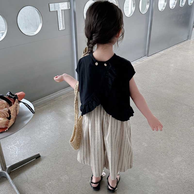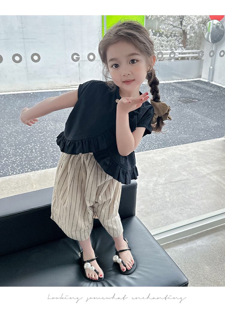【海外からの取り寄せ】2023新作 韓国子供服 子供 キッズ 女の子 かわいい パンツ ボトムス 半袖 ストライプ 2way 黒 上下セット #[kids577_13800]【送料込み】【250706】