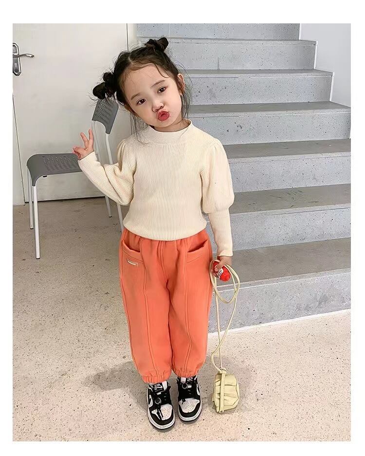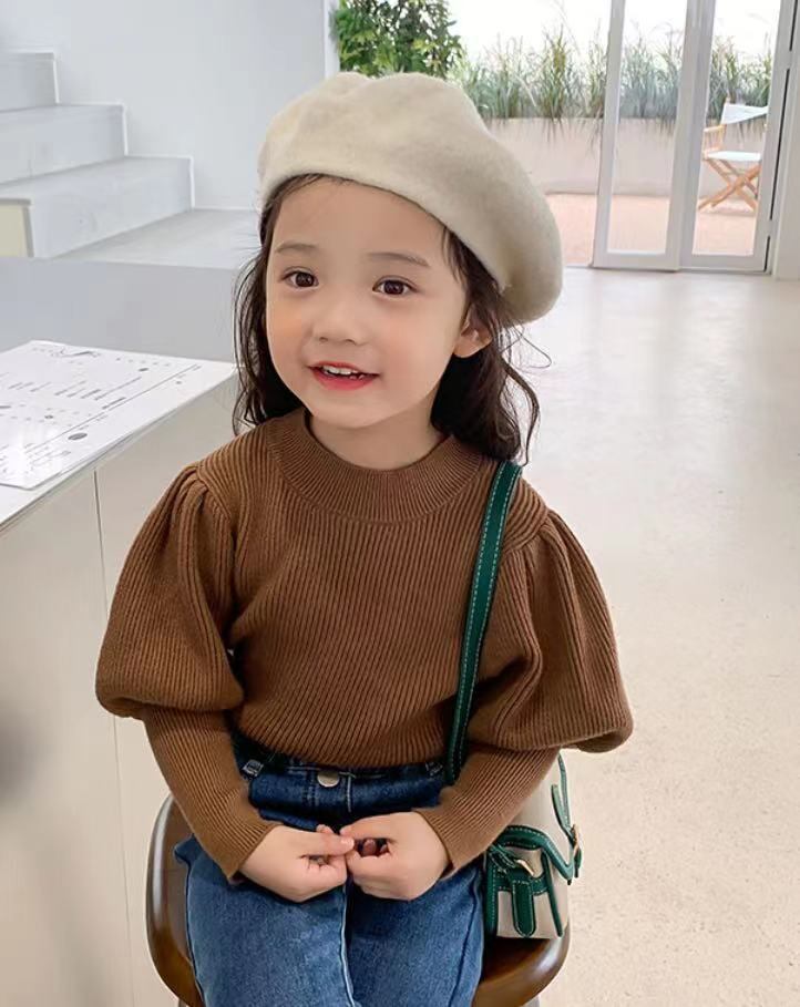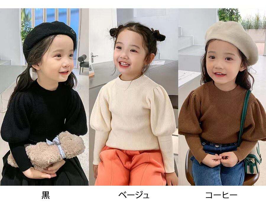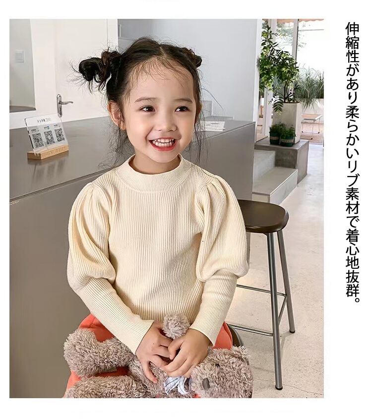 【海外からの取り寄せ】2022新作 韓国子供服 子供 キッズ ハーフタートルネック ニットトップス シンプル 伸縮性 パフスリーブ #[kids487_17800]【送料込み】【250607】