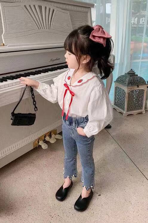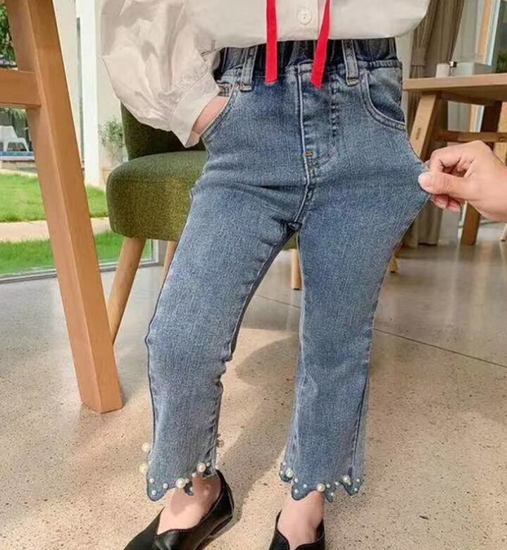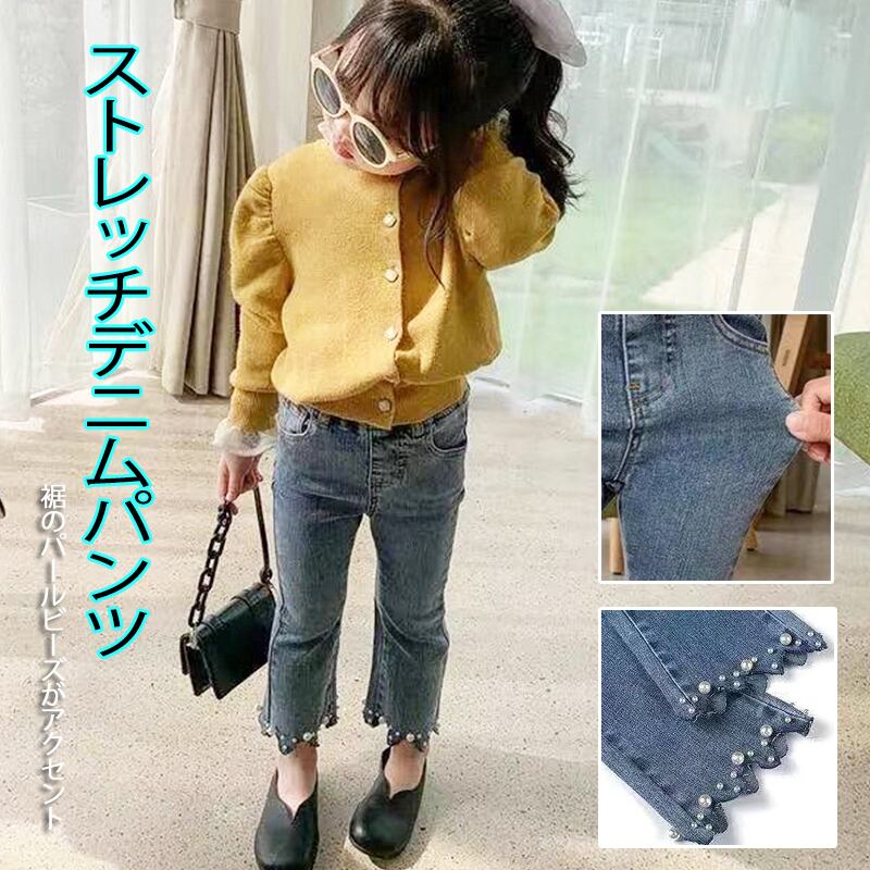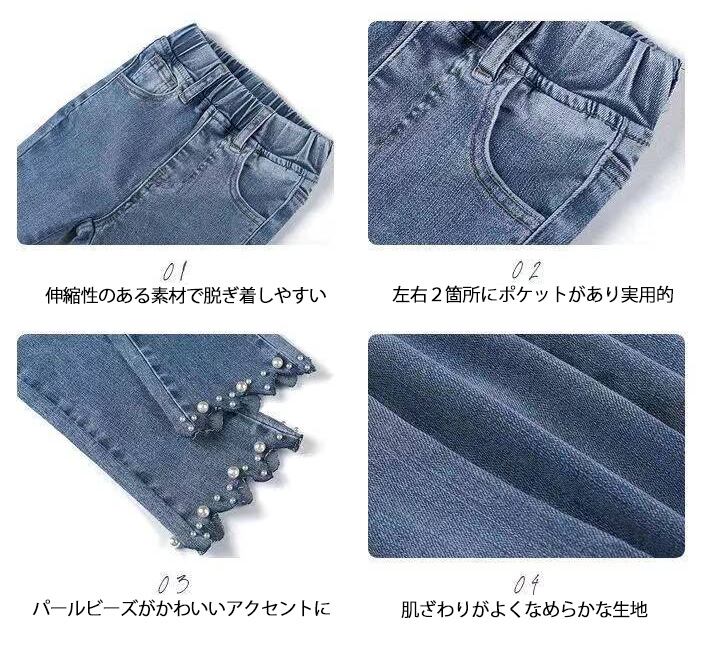 【海外からの取り寄せ】2021秋冬新作 韓国風 子供服 女の子 可愛いキッズ ジーンズ デニム風 タイト パールビーズ 伸縮性 #[kids309_11800]【送料込み】【250513】
