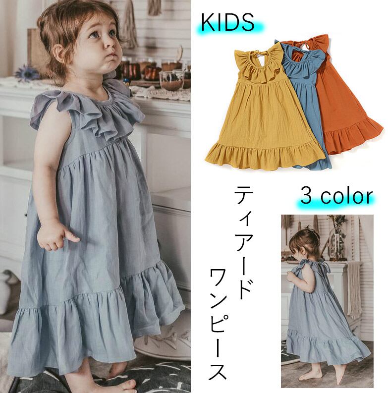 【海外からの取り寄せ】2021春夏新作 韓国風 子供服 女の子 可愛いキッズ 無地 ドレス コットン ティアードワンピース #[kids277_13800]【送料込み】【250513】
