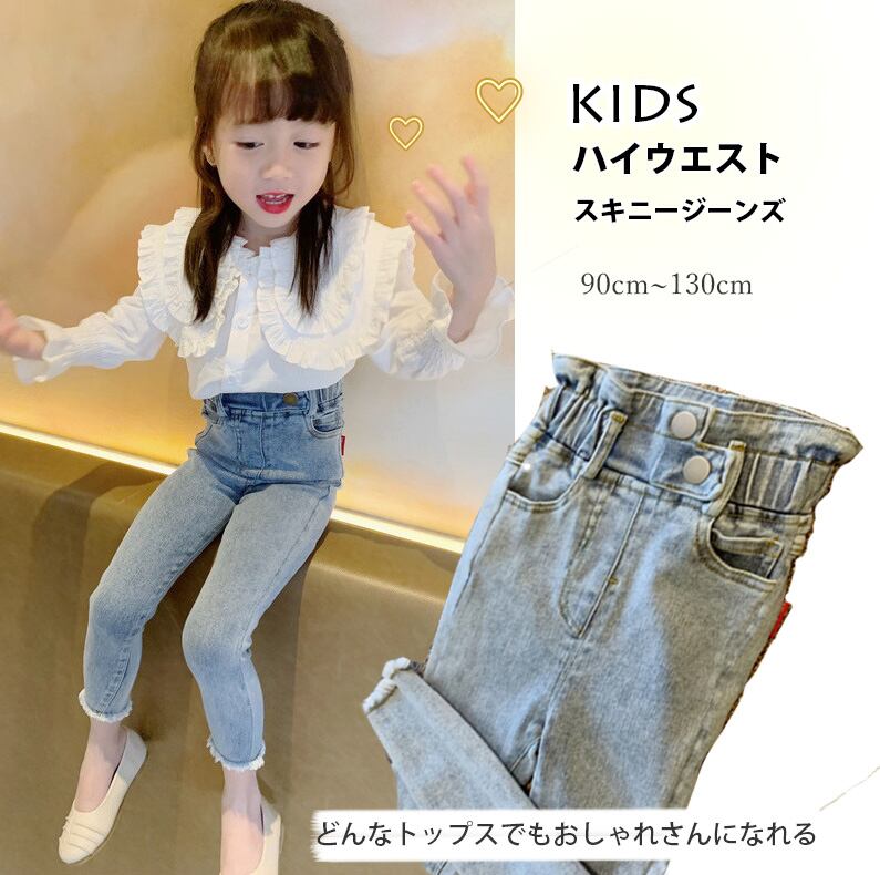 【海外からの取り寄せ】2021春夏新作 韓国風 子供服 女の子 可愛いキッズ デニム ジーンズ スキニー ハイウエスト ウエストゴム #[kids232_11800]【送料込み】【250513】
