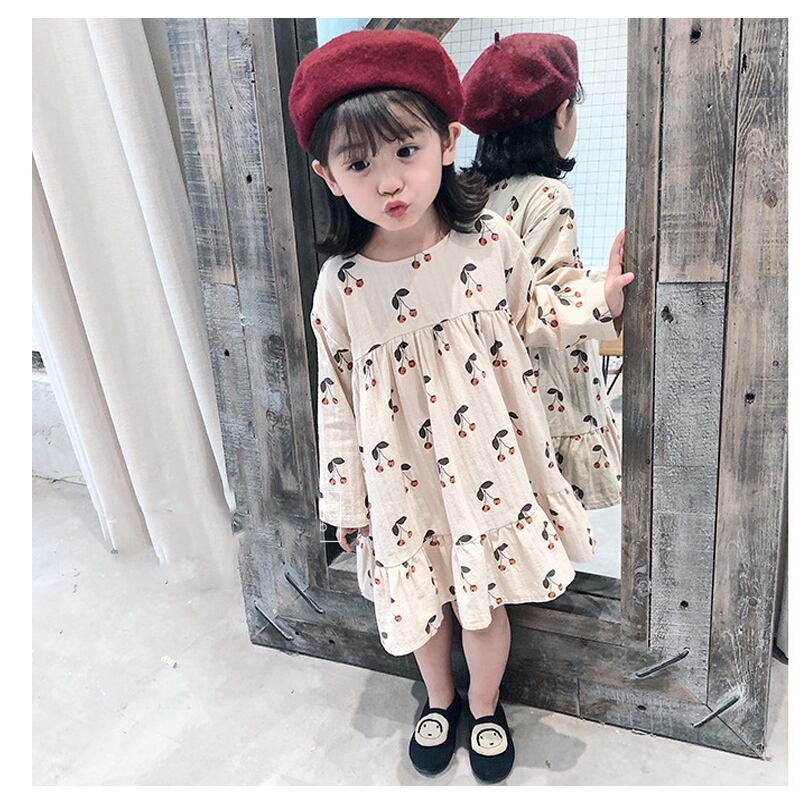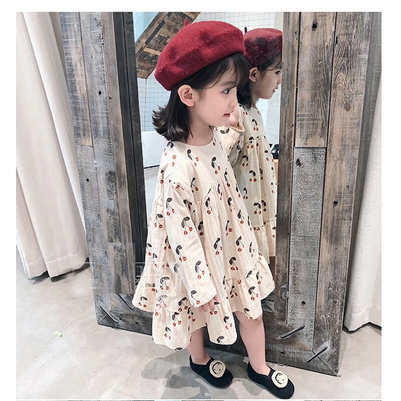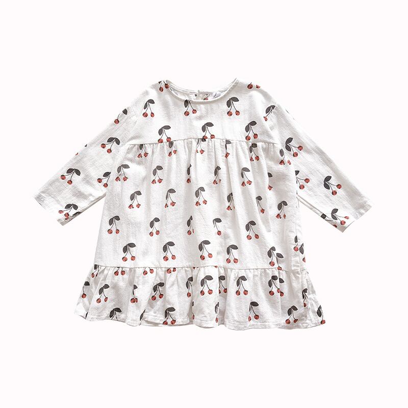 【海外からの取り寄せ】2020秋新作 韓国風 子供服 女の子 可愛いキッズ コットン チェリー柄 ワンピース 長袖 小花 チェリー #[kids170_12800]【送料込み】【250415】