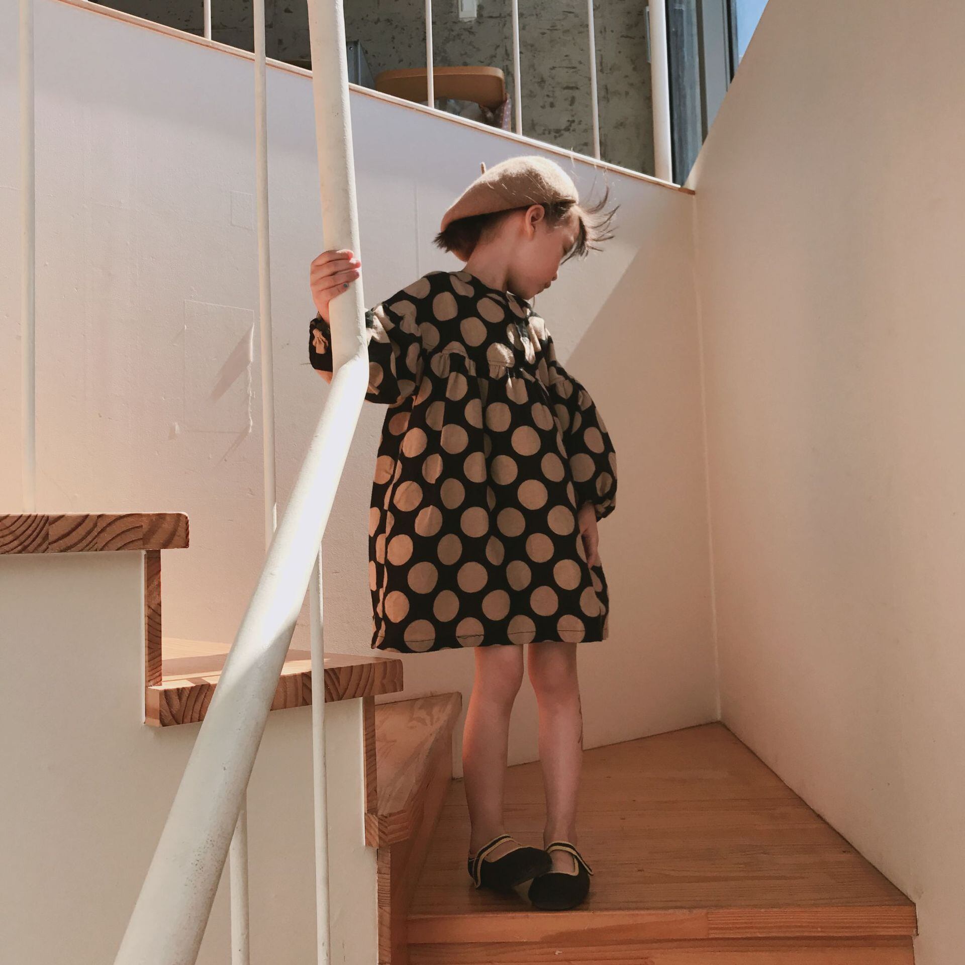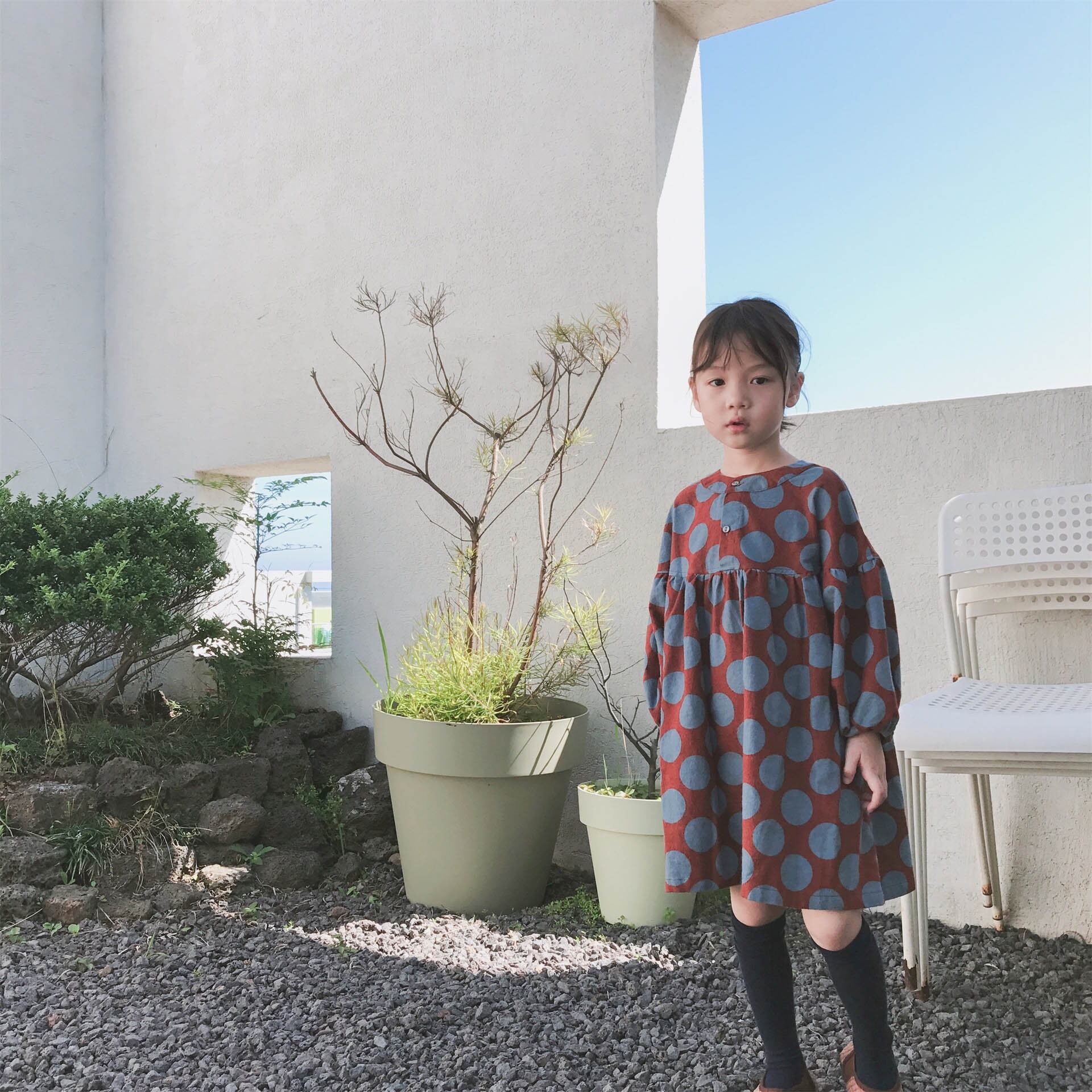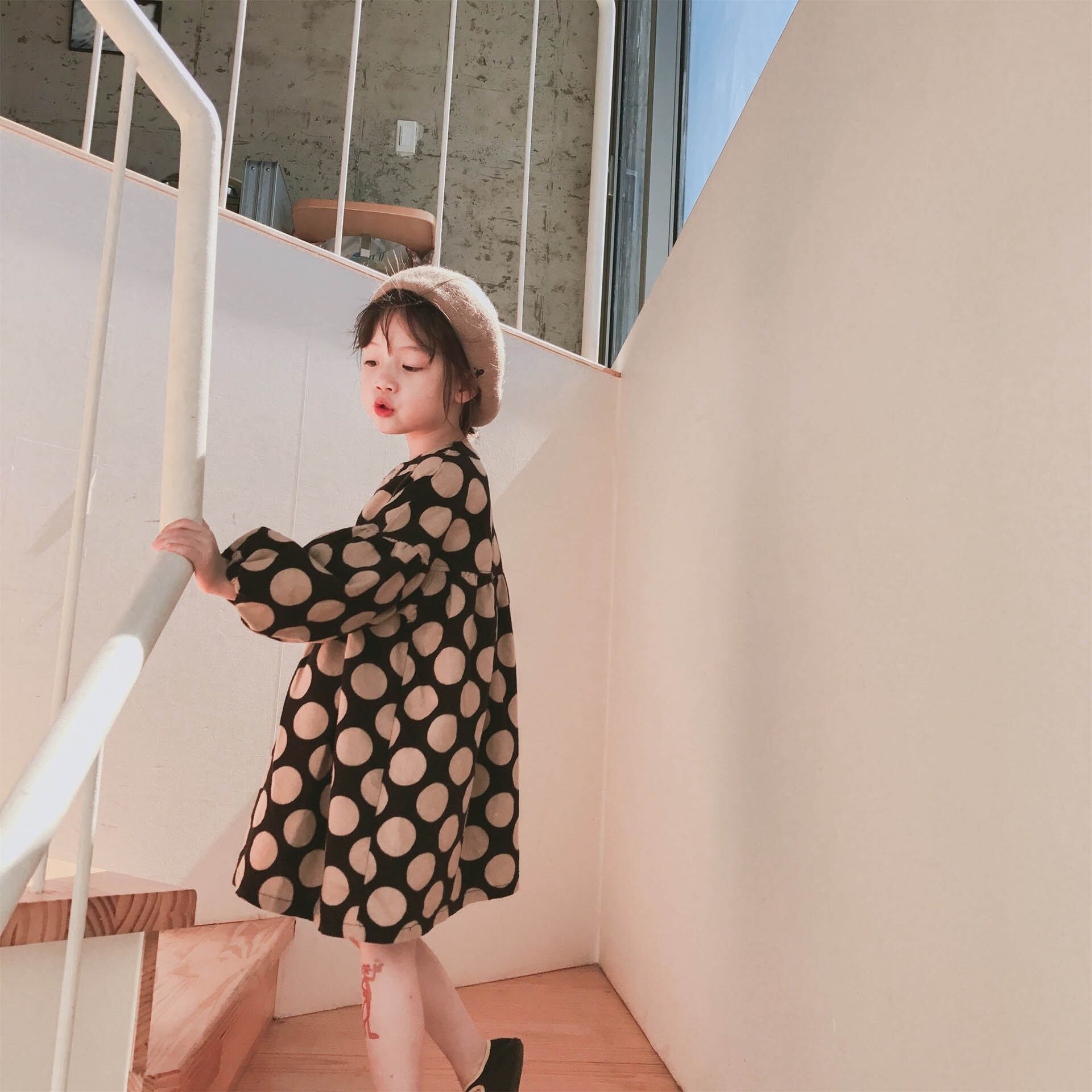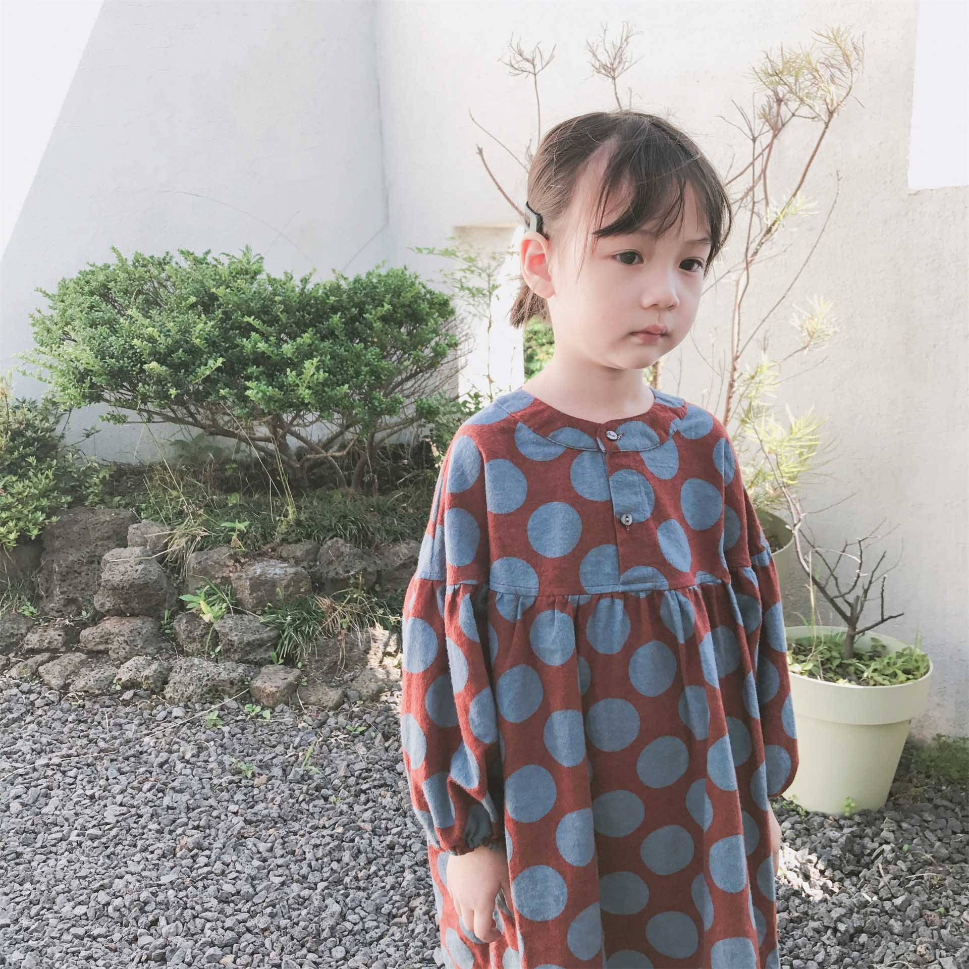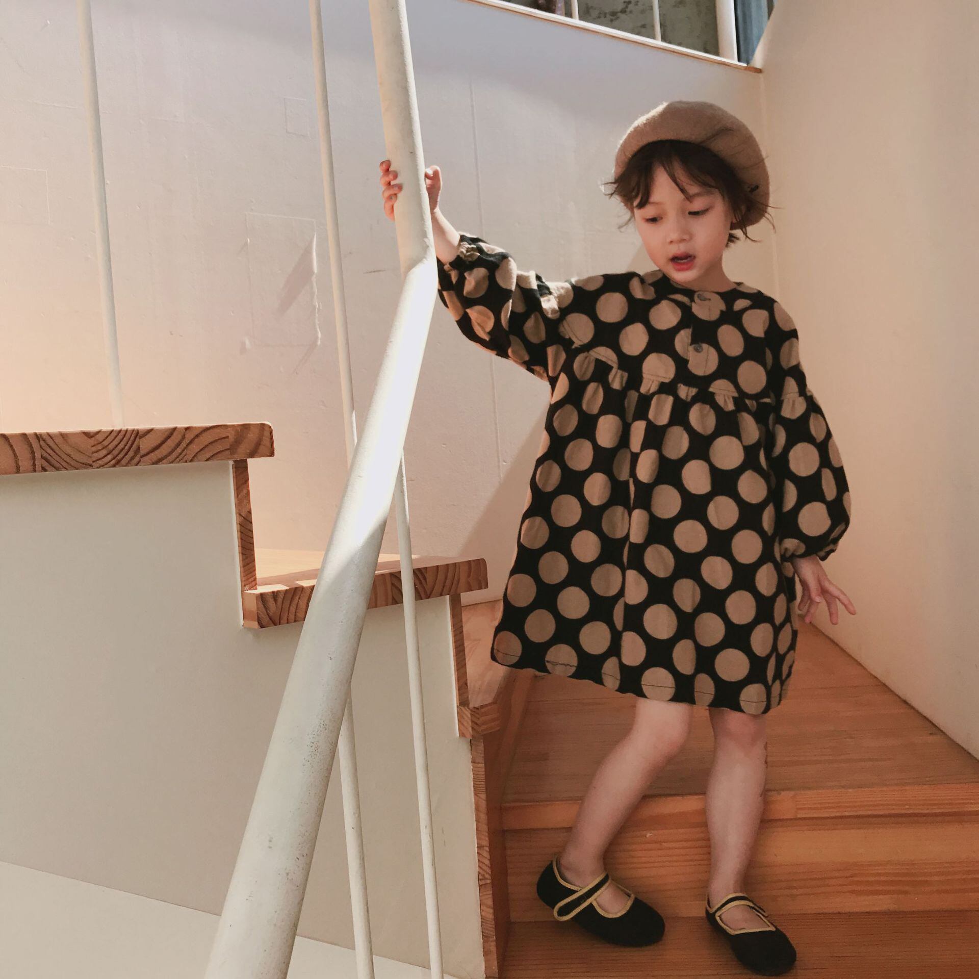 【海外からの取り寄せ】2020秋新作 韓国風 子供服 女の子 可愛いキッズ コットン シャツ ワンピース 長袖 ドット柄 #[kids161_12800]【送料込み】【250415】