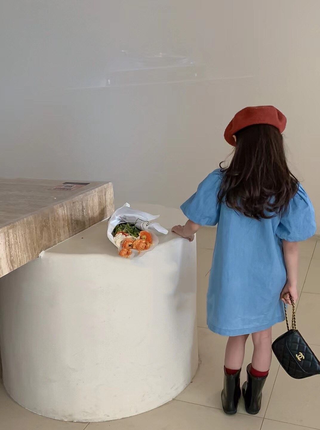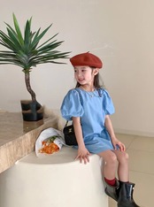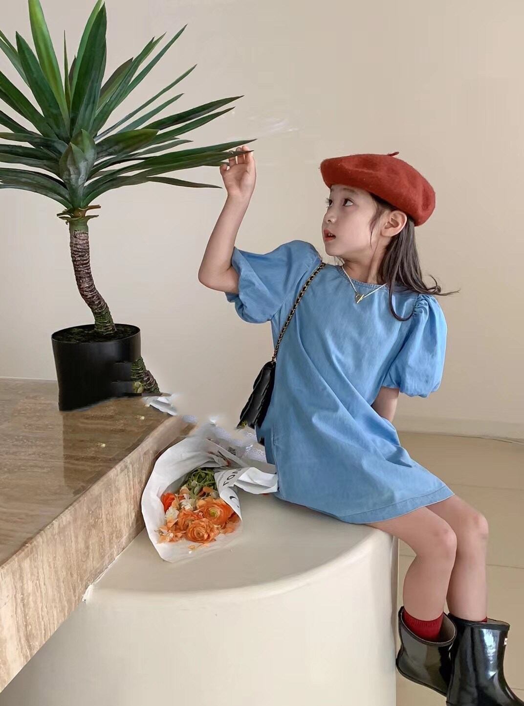 【海外からの取り寄せ】2022新作 韓国子供服 子供服 女の子 半袖 ワンピース キッズ バルーンスリーブ カジュアルワンピ #[kids400_13800]【送料込み】【250706】