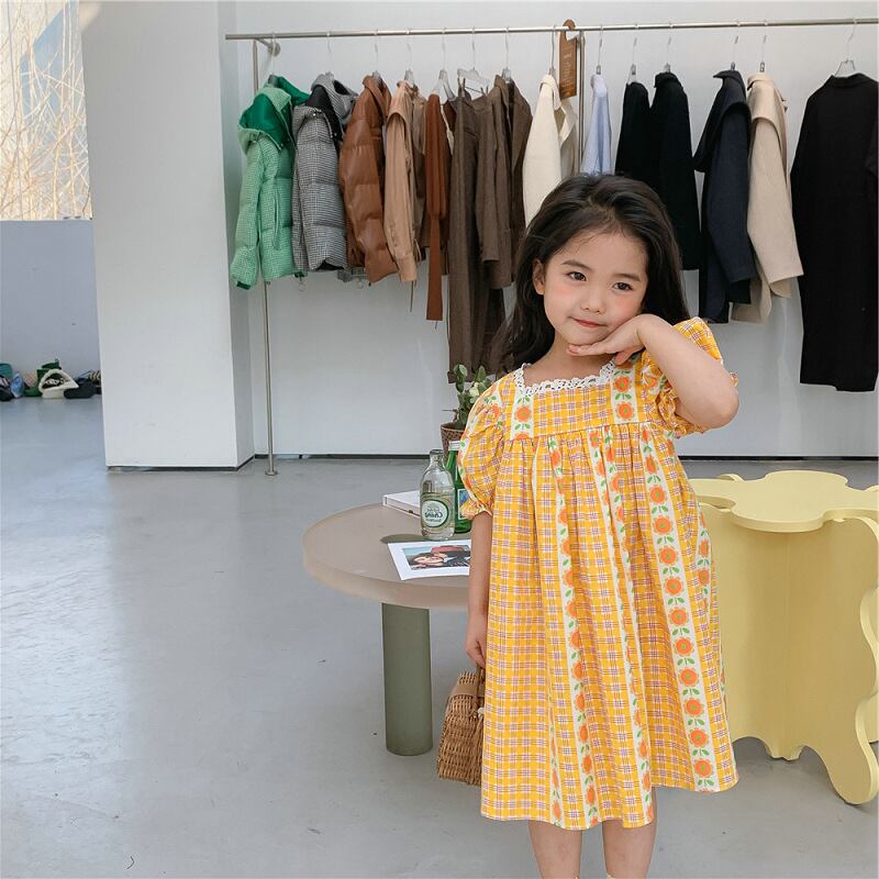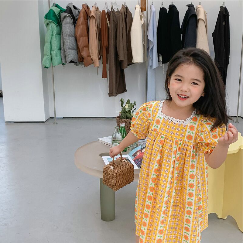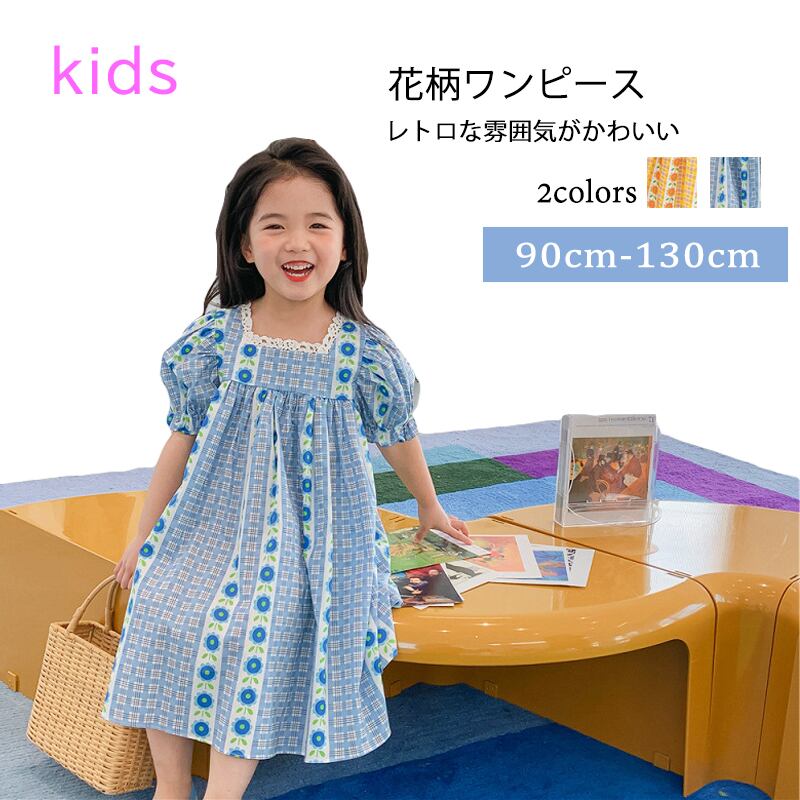 【海外からの取り寄せ】2022新作 韓国子供服 子供服 女の子 半袖 ワンピース キッズ レトロ レース イエロー ブルー かわいい #[kids397_8800]【送料込み】【250706】