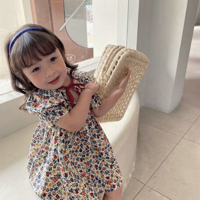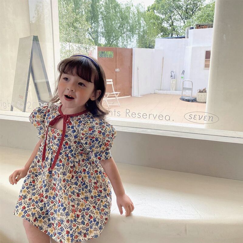 【海外からの取り寄せ】2022新作 韓国子供服 子供服 女の子 半袖 ワンピース キッズ リボン 花柄 かわいい スカート #[kids395_9800]【送料込み】【250706】