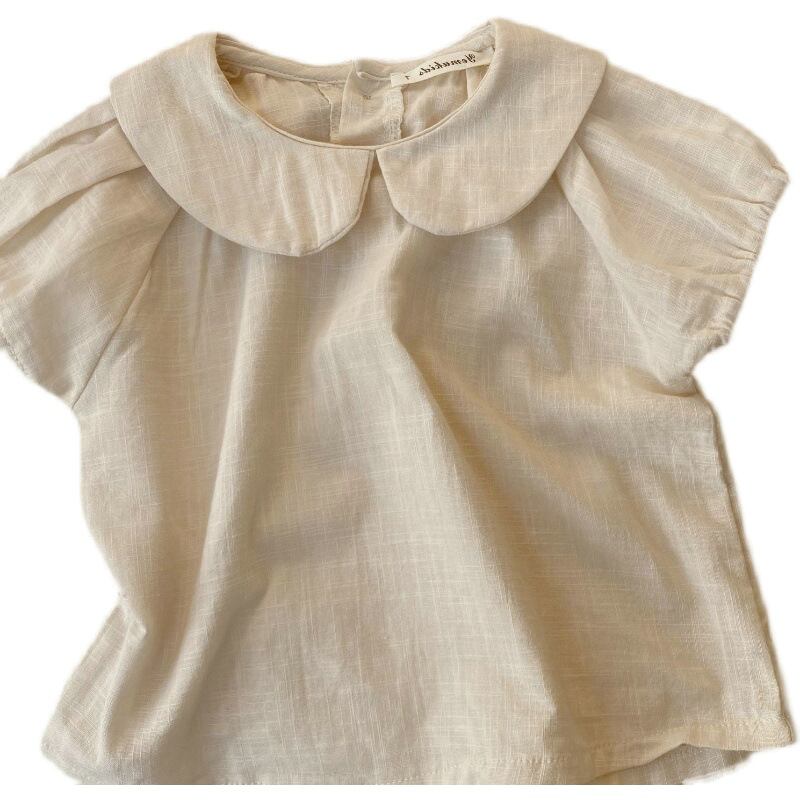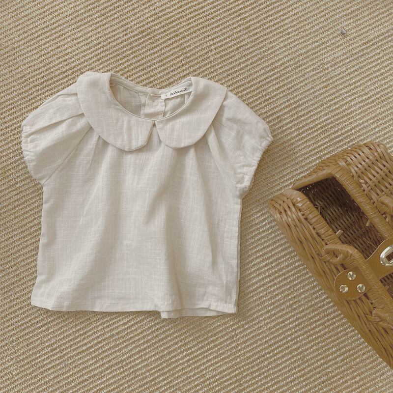 ・トップスは丸い襟が可愛い半袖ブラウス。