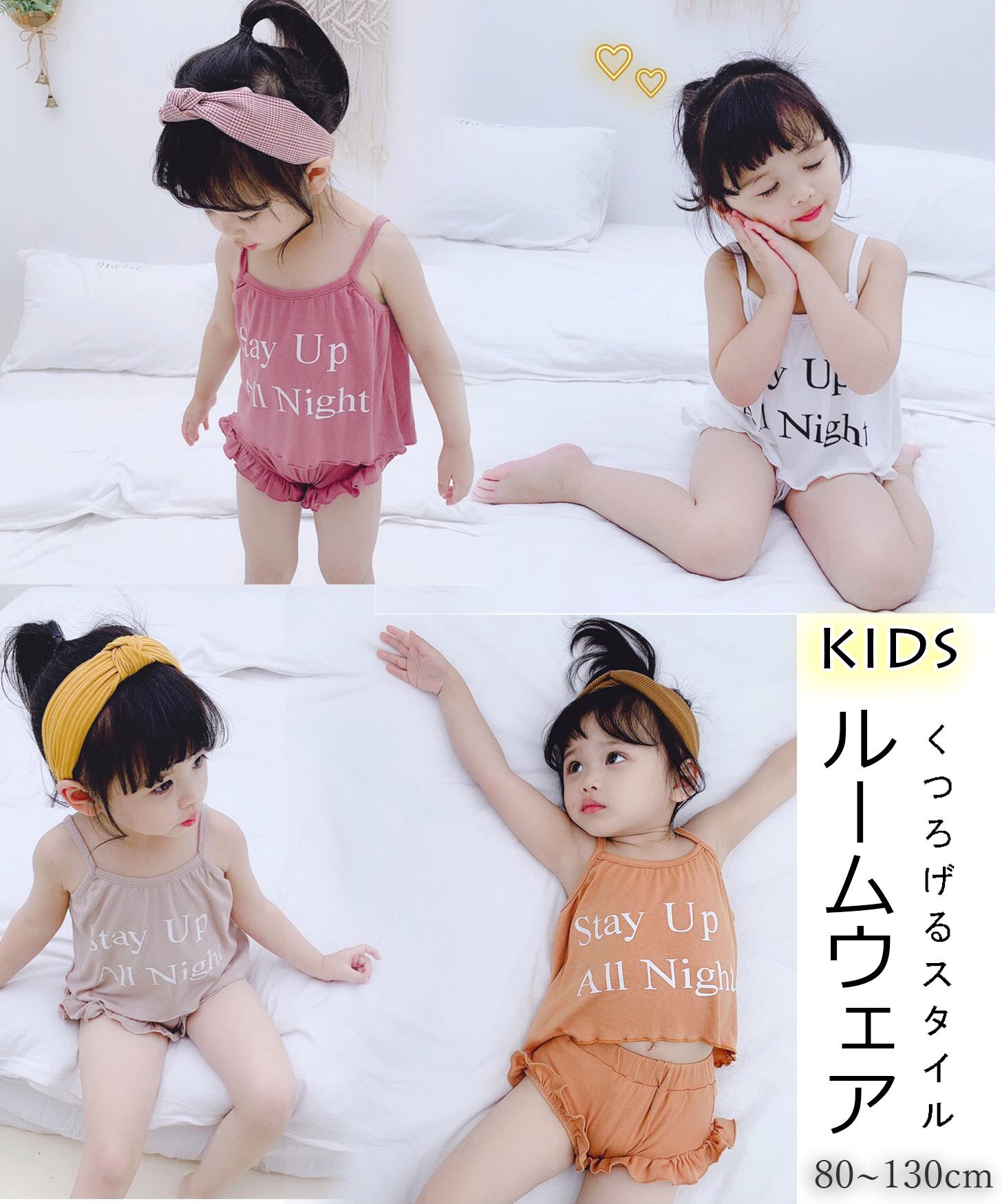 【海外からの取り寄せ】2020新作 韓国風 子供服 女の子 可愛いキッズ ノースリーブ パジャマ ルームウェア インナーセット フリル #[kids128_10800]【送料込み】【250508】