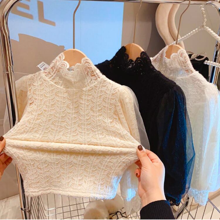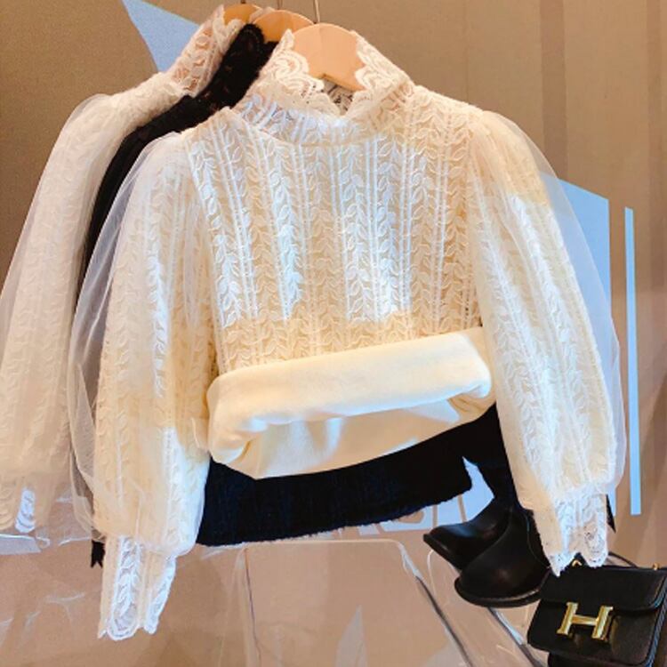 【海外からの取り寄せ】2023新作 韓国子供服 子供 キッズ ブラウス 発表会 女の子 トップス 長袖 レース 上品 チュール #[kids677_12800]【送料込み】【250508】