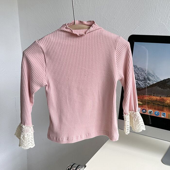 【海外からの取り寄せ】2023新作 韓国子供服 子供 キッズ 長袖 トップス 袖レース プルオーバー ロンt ベーシック 無地 #[kids643_10800]【送料込み】【250706】