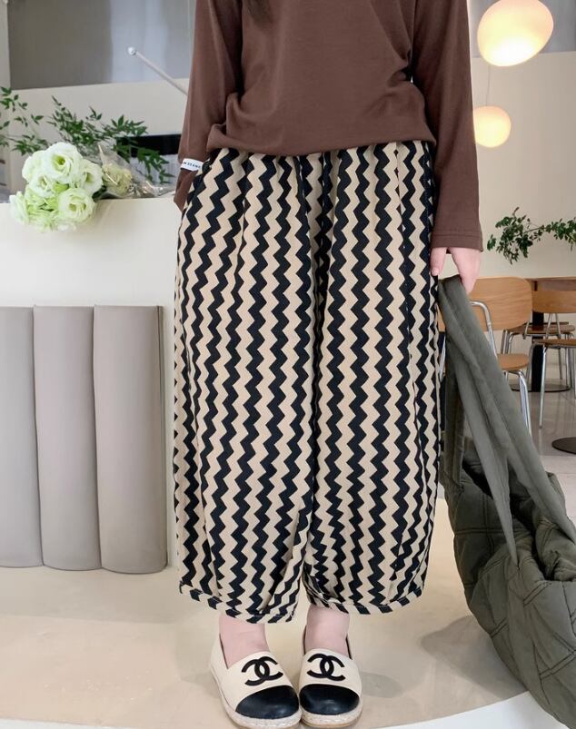 【海外からの取り寄せ】2023新作 韓国子供服 子供 キッズ パンツ ボトムス バルーンパンツ ワイドパンツ ガウチョ柄 ストライプ #[kids632_8800]【送料込み】【250706】