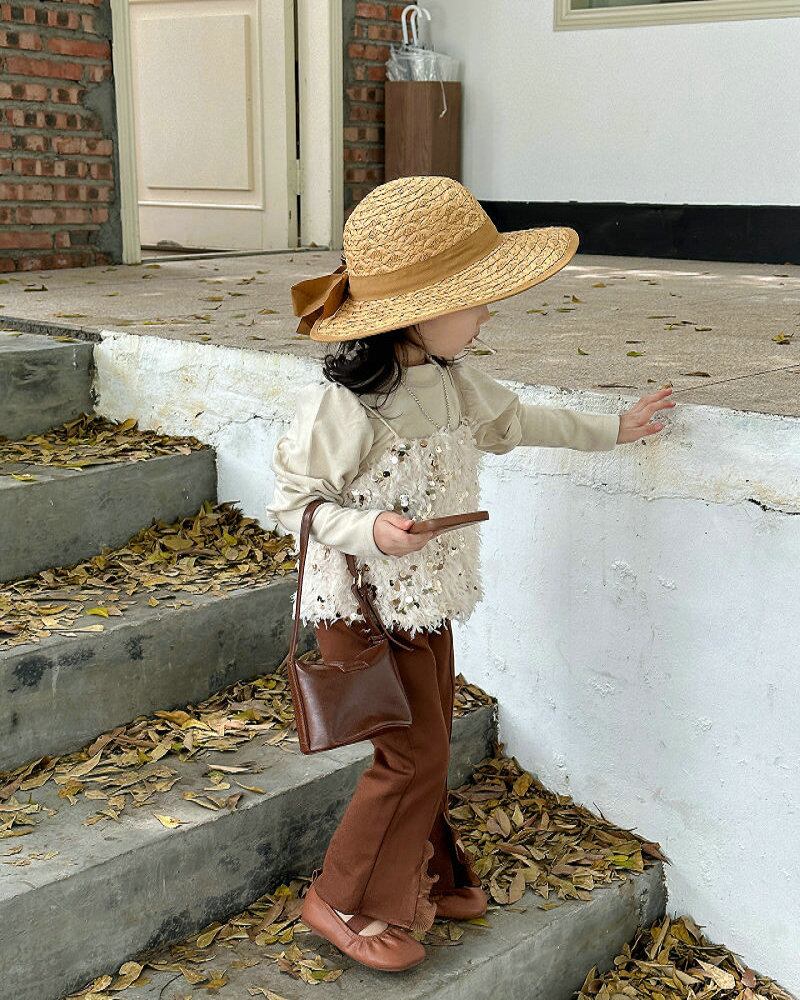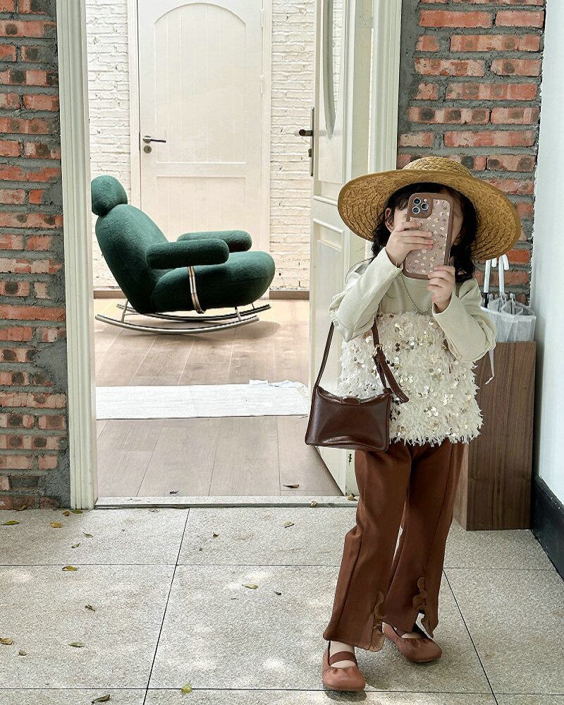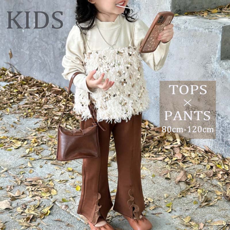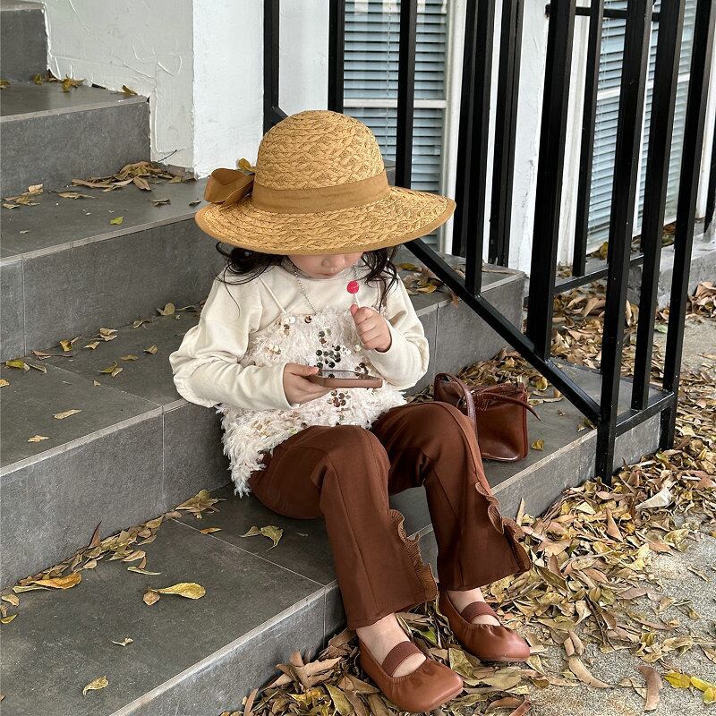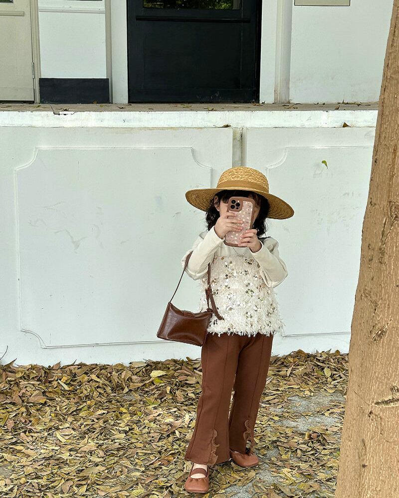 【海外からの取り寄せ】2023新作 韓国子供服 子供 キッズ 長袖シャツ パンツ スパンコール レイヤード ブラウン フリル #[kids625_17800]【送料込み】【250706】