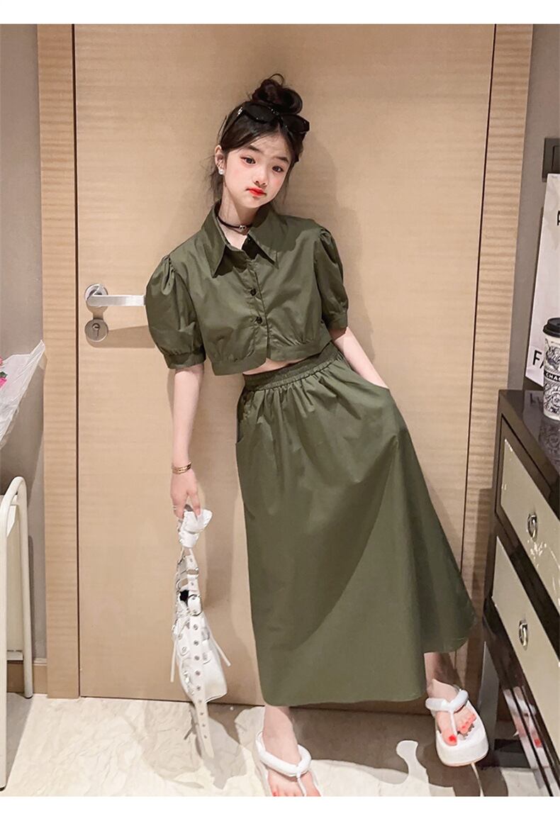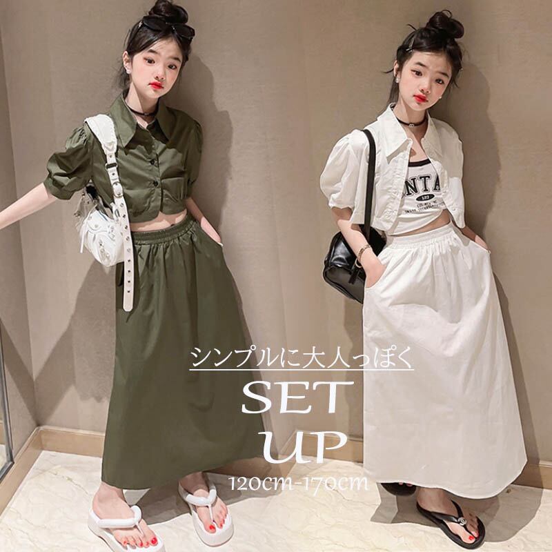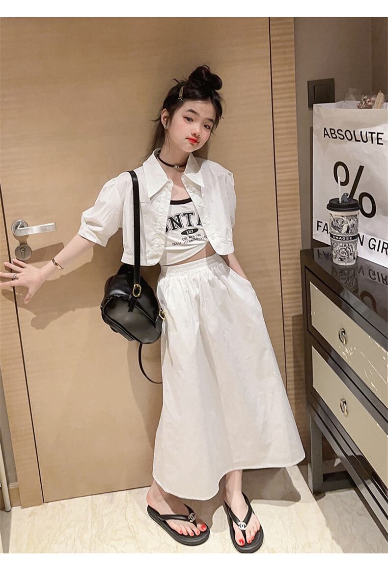 【海外からの取り寄せ】2023新作 韓国子供服 子供 キッズ レディース セットアップ シャツ 襟 ロングスカート ホワイト #[kids612_25800]【送料込み】【250706】