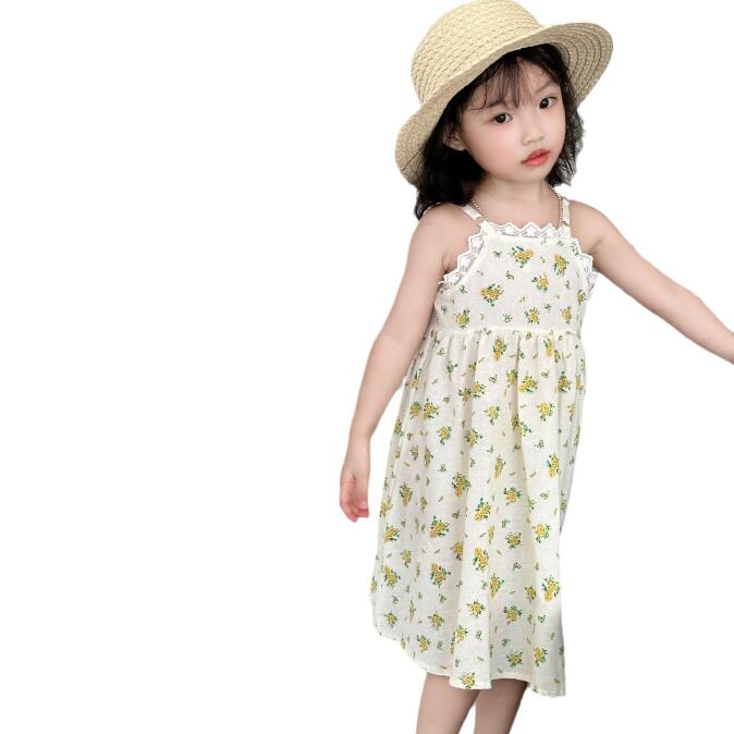【海外からの取り寄せ】2023新作 韓国子供服 子供 キッズ 女の子 かわいい レース 花柄 ワンピース キャミソール ホワイト 夏 #[kids609_9800]【送料込み】【250326】