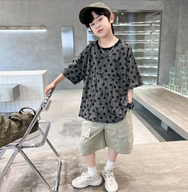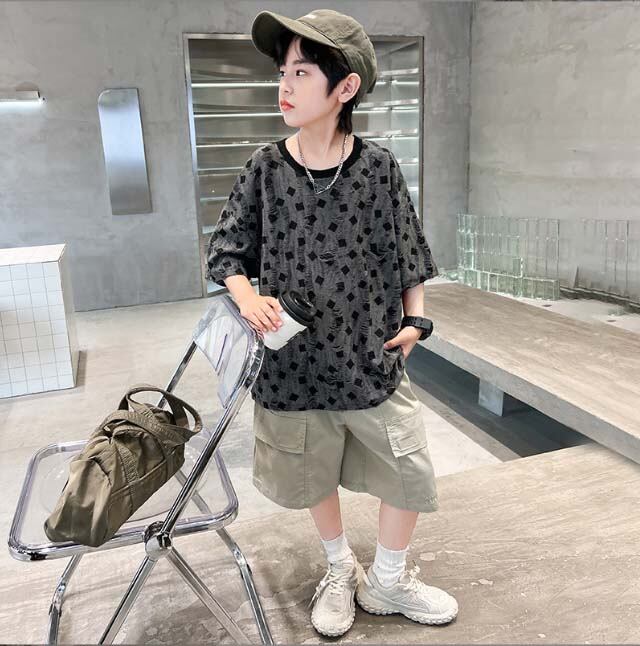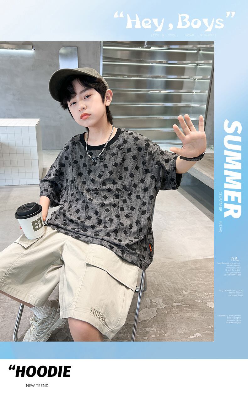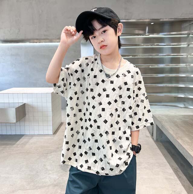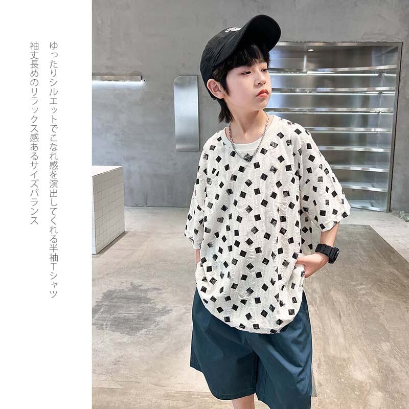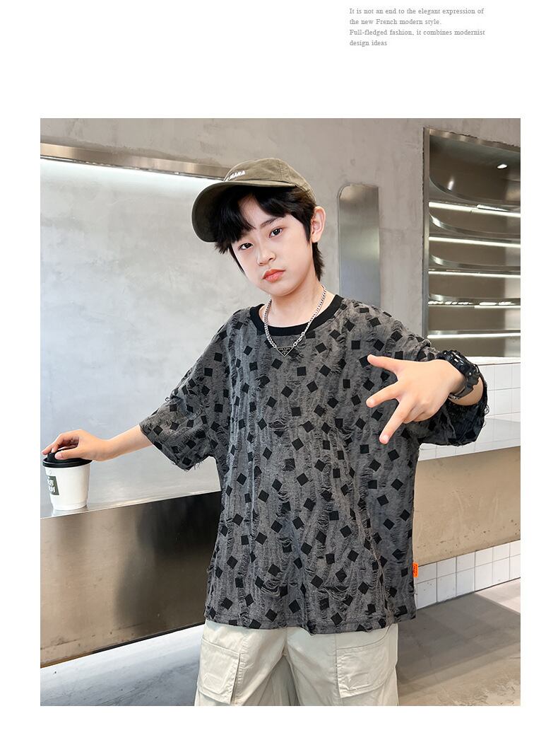 【海外からの取り寄せ】2023新作 韓国子供服 子供 キッズ 男の子 半袖 夏 ダメージ加工 カジュアル プルオーバー メンズ ドット #[kids603_13800]【送料込み】【250706】