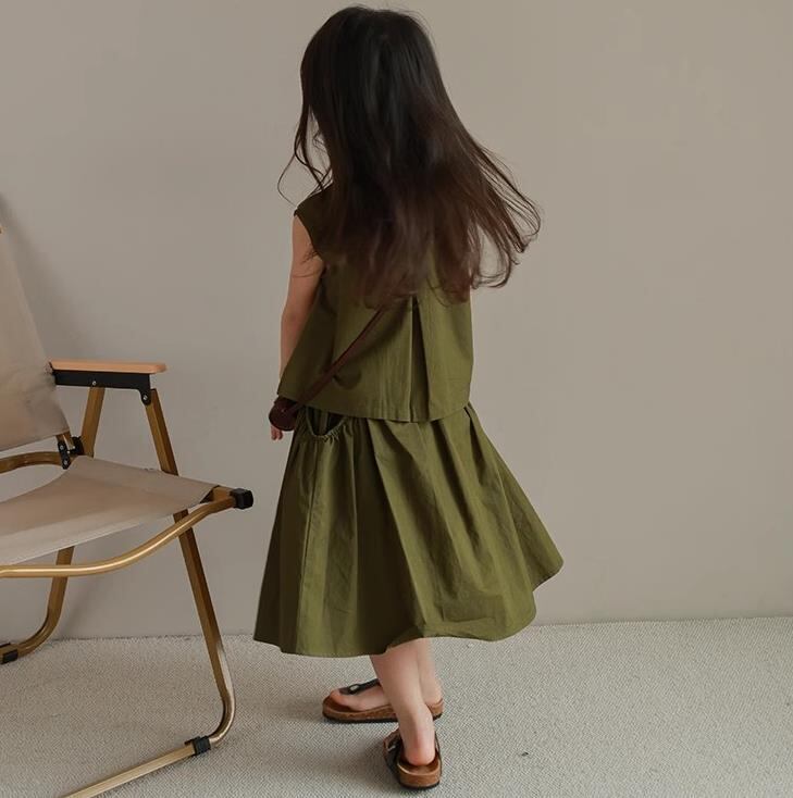 【海外からの取り寄せ】2023新作 韓国子供服 子供 キッズ トップス ボトムス パンツ グリーン くすみカラー サファリ 女の子 #[kids599_13800]【送料込み】【250508】