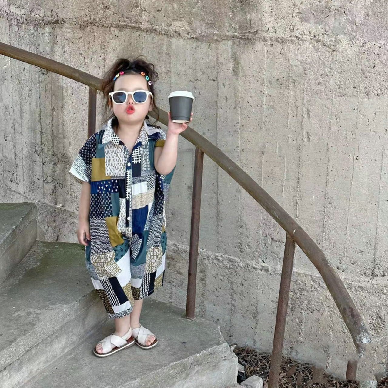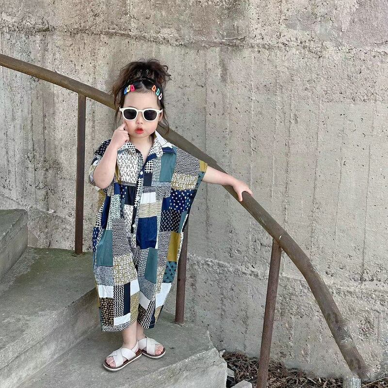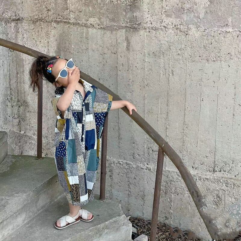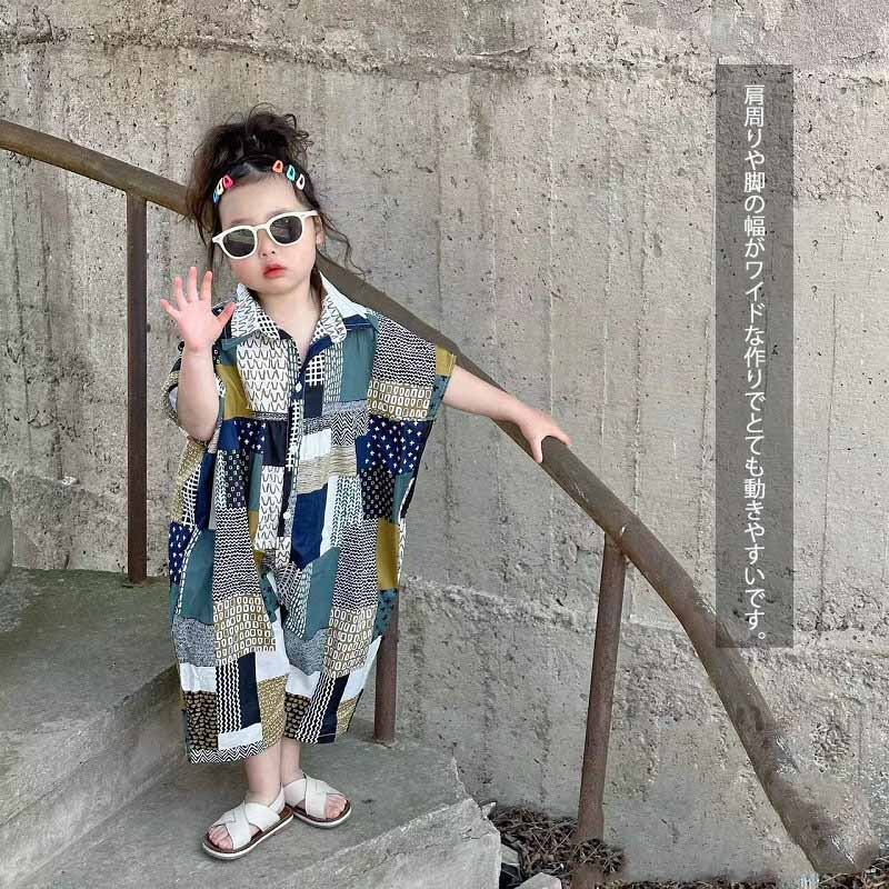 【海外からの取り寄せ】2023新作 韓国子供服 子供 キッズ 女の子 オールインワン 半袖 個性的 ジャンプスーツ つなぎ 幾何学 #[kids581_13800]【送料込み】【250706】