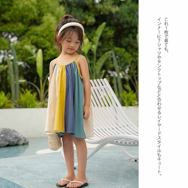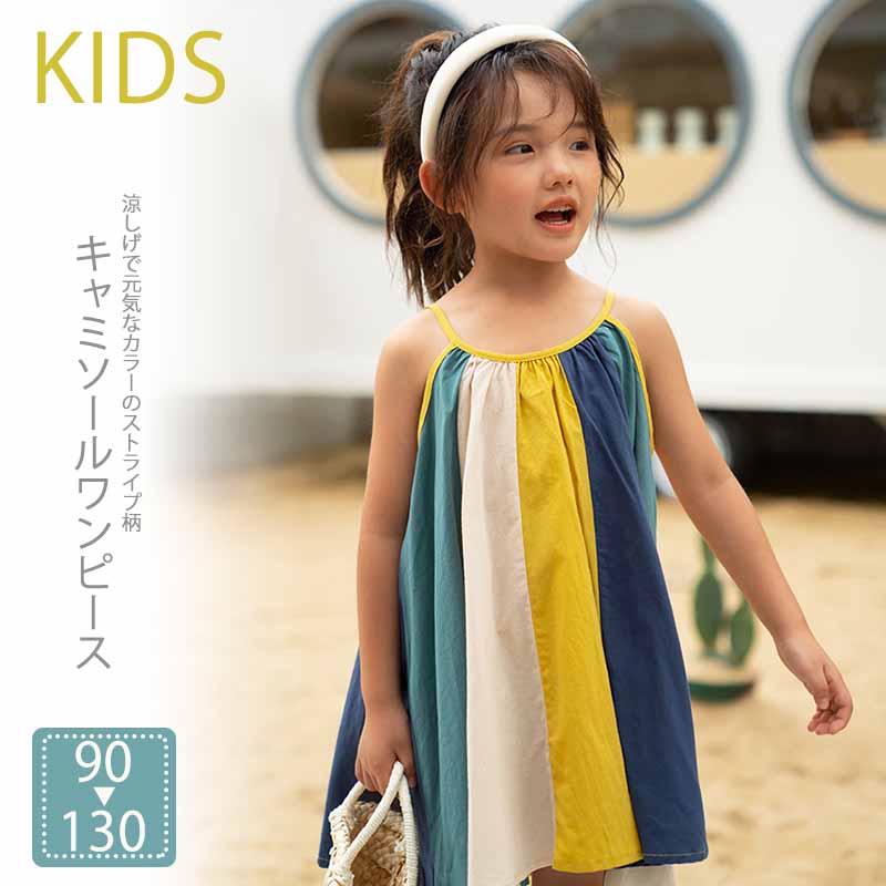 【海外からの取り寄せ】2023新作 韓国子供服 子供 キッズ 女の子 かわいい ドレス ワンピース キャミソール ストライプ 夏 服 #[kids578_9800]【送料込み】【250706】