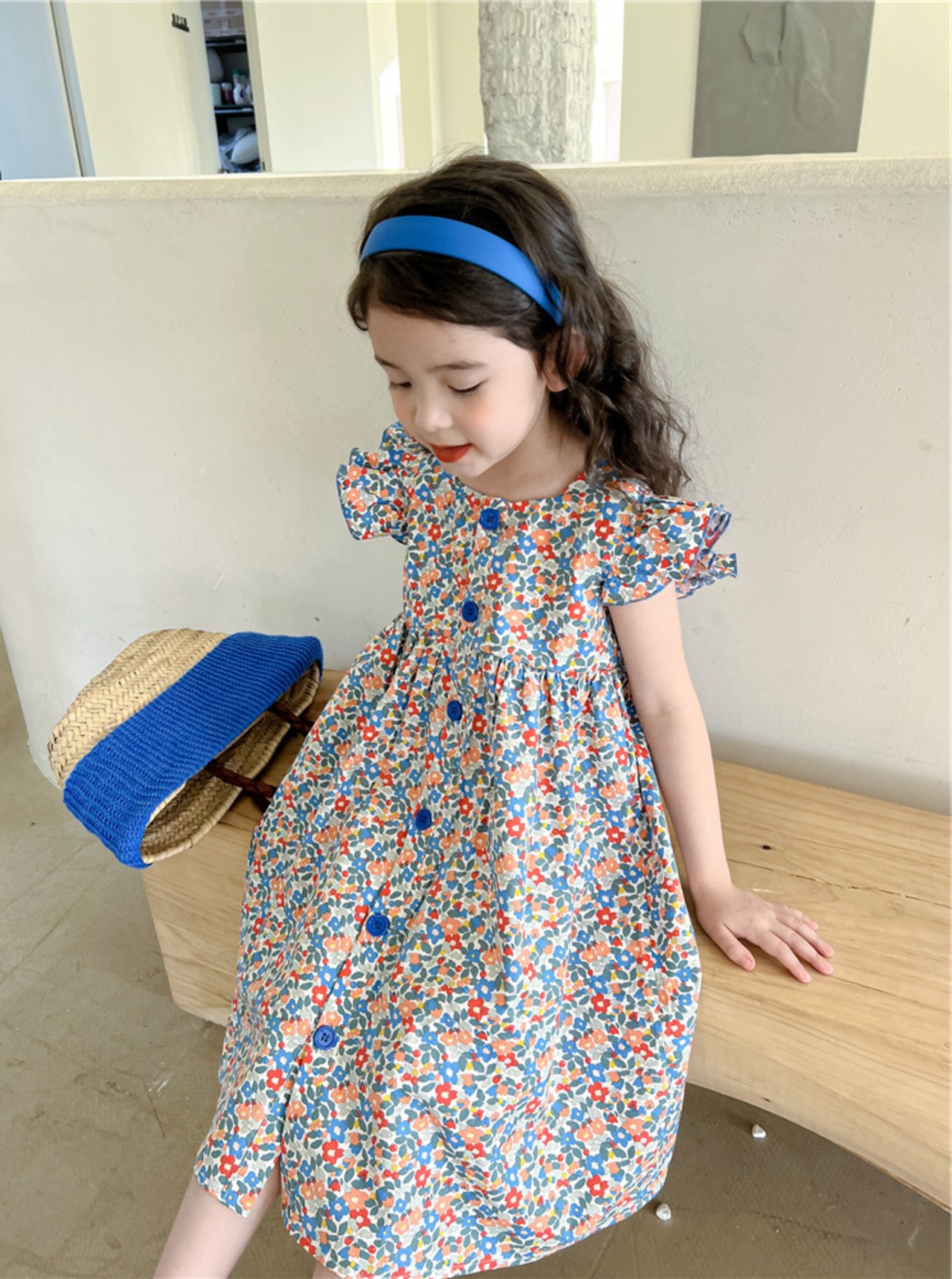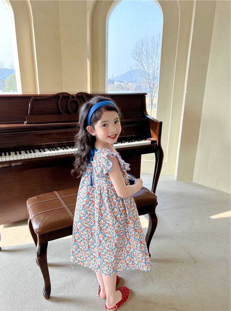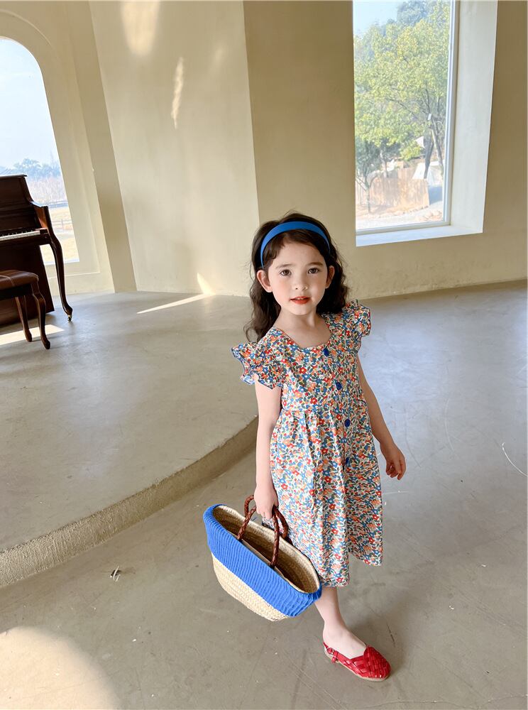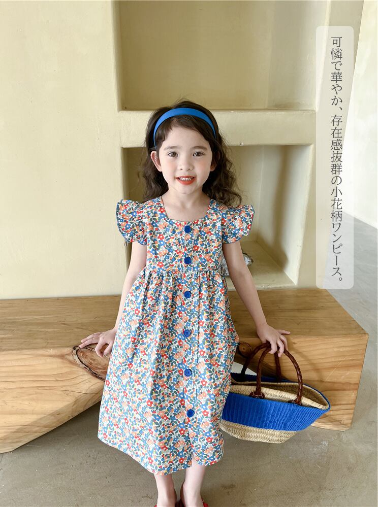 【海外からの取り寄せ】2023新作 韓国子供服 子供 キッズ 女の子 かわいい ドレス ワンピース フリル袖 花柄 小花柄 ボタン #[kids572_13800]【送料込み】【250706】