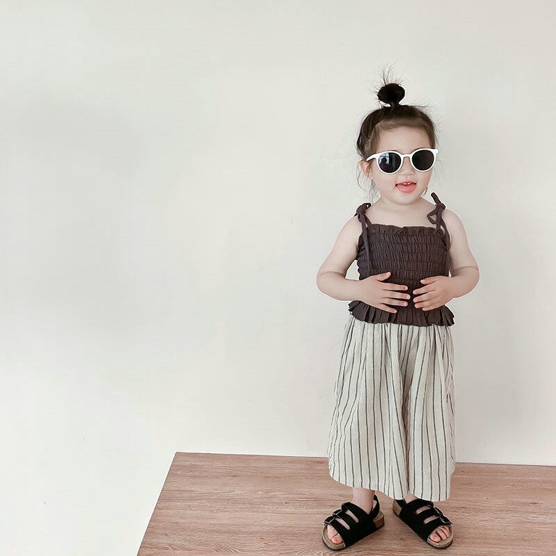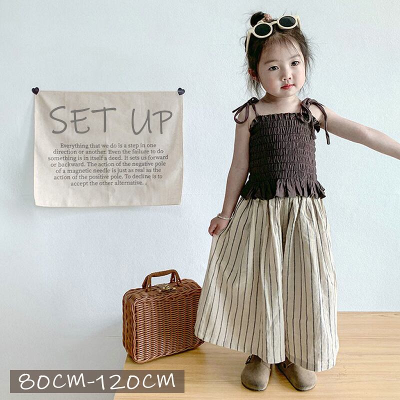 【海外からの取り寄せ】2023新作 韓国子供服 子供 キッズ 上下セットトップス キャミソール ズボン ワイドパンツ 夏 ギャザー #[kids571_14800]【送料込み】【250706】