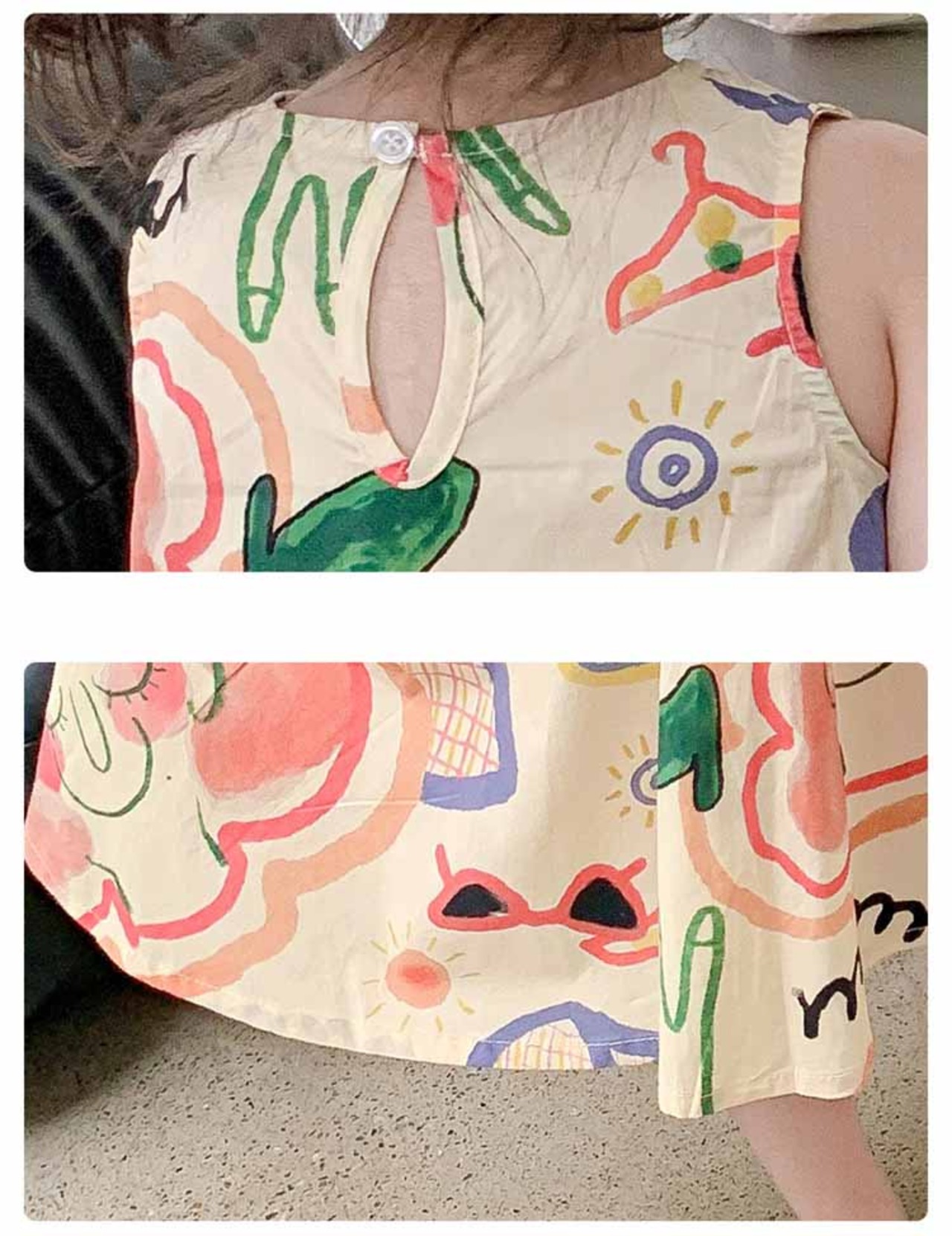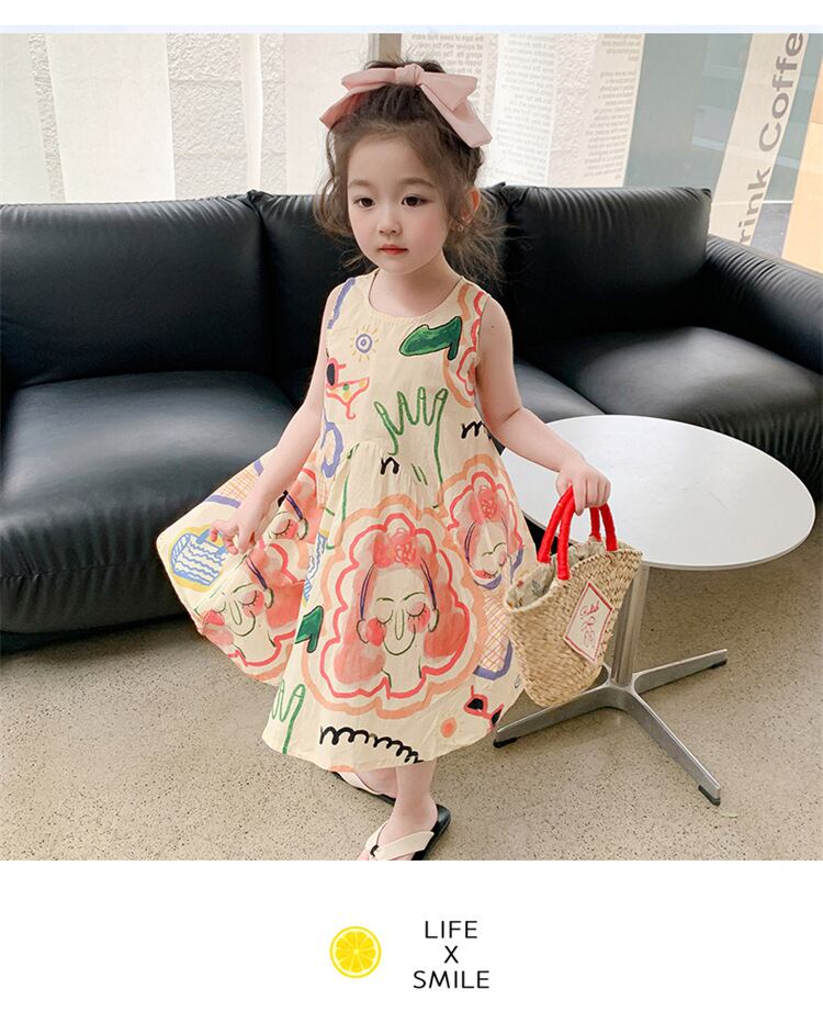 【海外からの取り寄せ】2023新作 韓国子供服 子供 キッズ 女の子 ワンピース ノースリーブ イラスト かわいい ふんわり ベージュ #[kids559_9800]【送料込み】【250706】