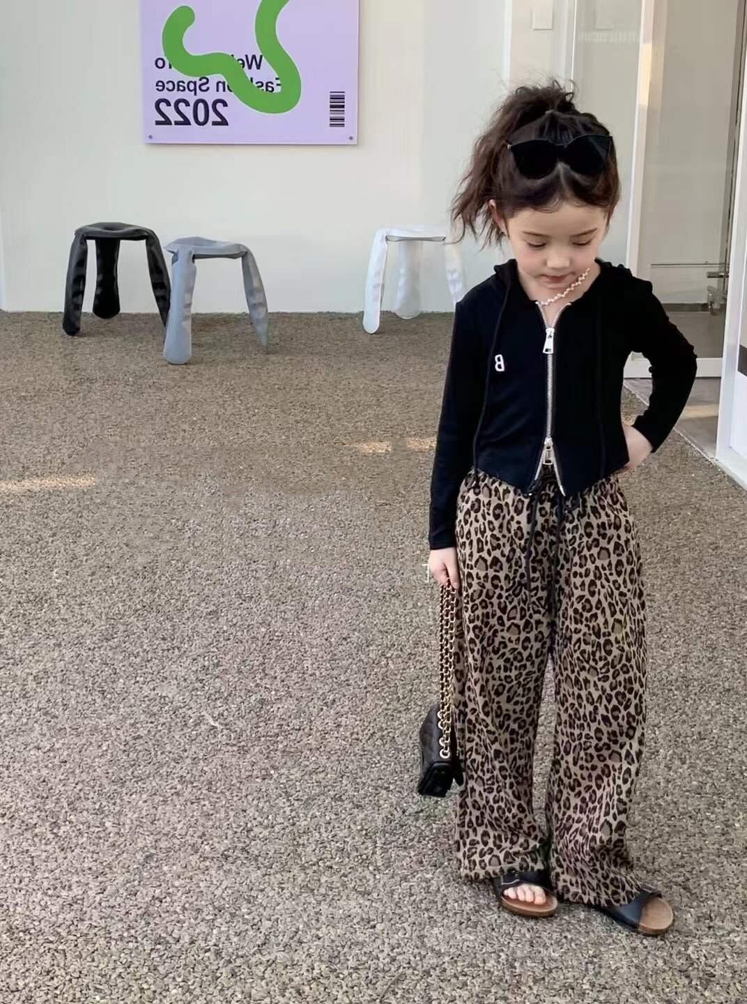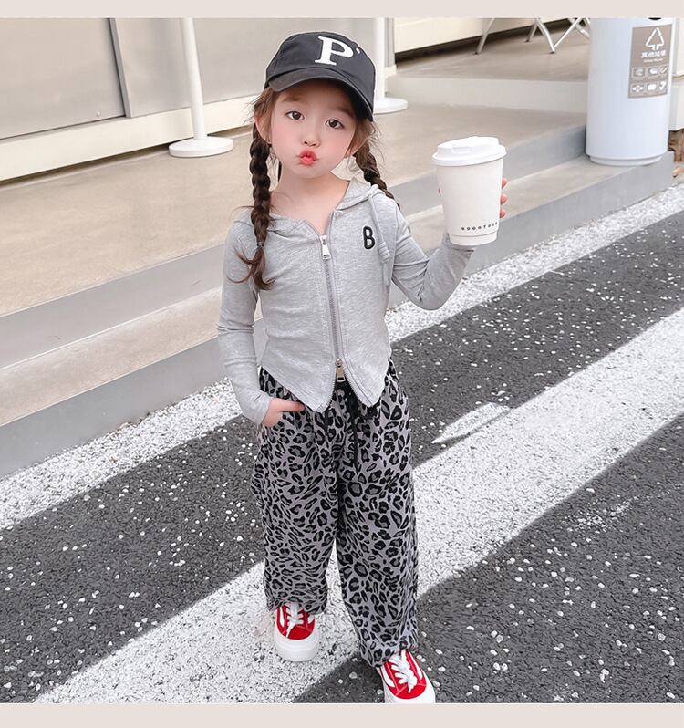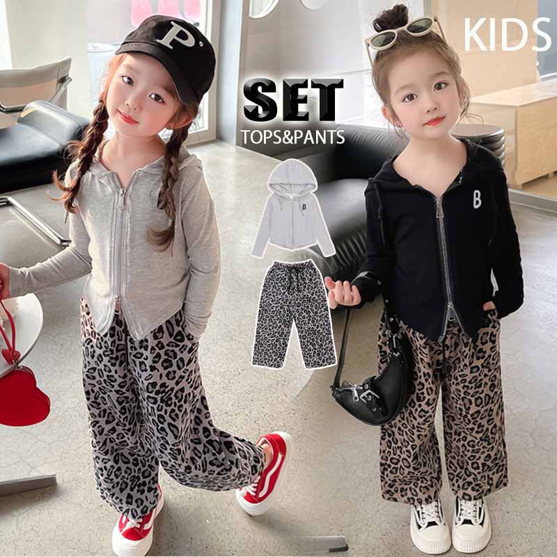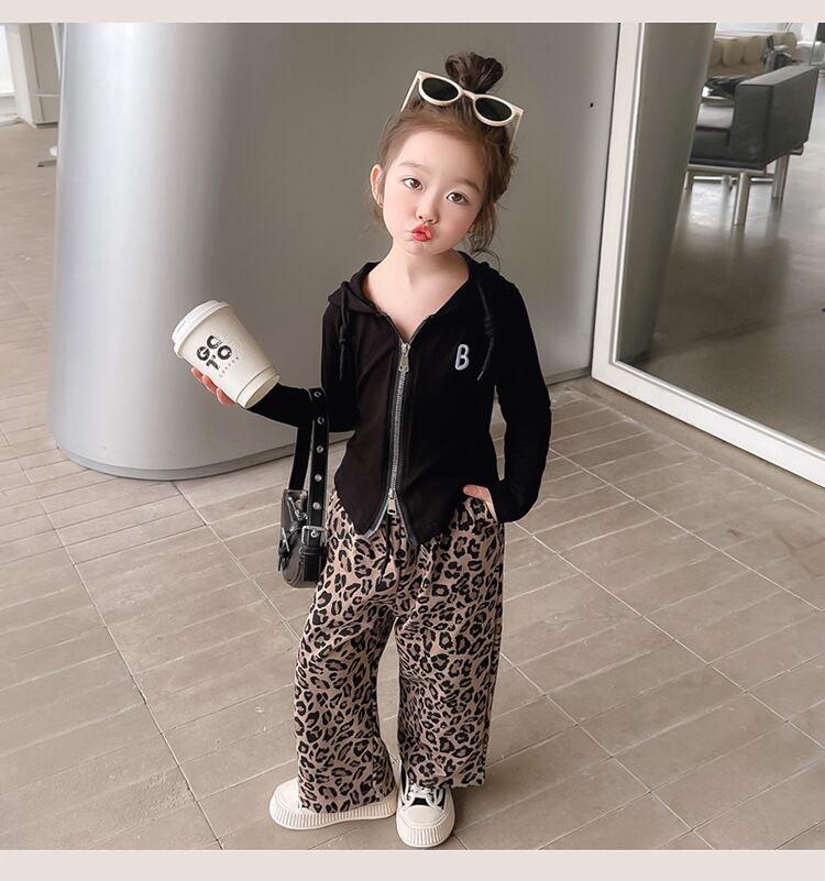 【海外からの取り寄せ】2023新作 韓国子供服 子供 キッズ 女の子 上下セットトップス パーカー フード パンツ ズボン ヒョウ #[kids554_21800]【送料込み】【250415】