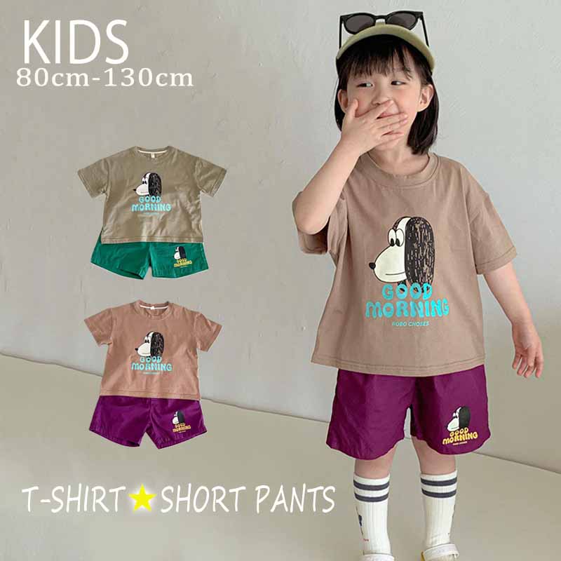 【海外からの取り寄せ】2023新作 韓国子供服 子供 キッズ 半袖 Tシャツ トップス イラスト ショートパンツ 半ズボン 犬 ドッグ #[kids551_9800]【送料込み】【250706】