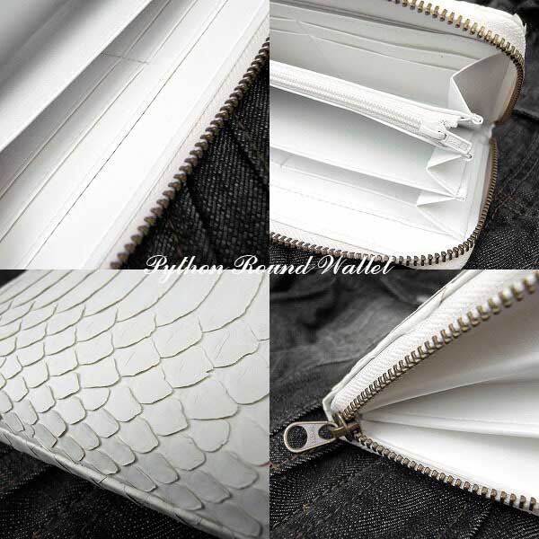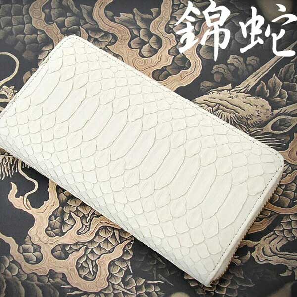 【日本製財布】白蛇ラウンドファスナー長財布 #[100-IKI192_150000](日本製・ホワイトパイソン・金運・開運)【送料込み】【251103】