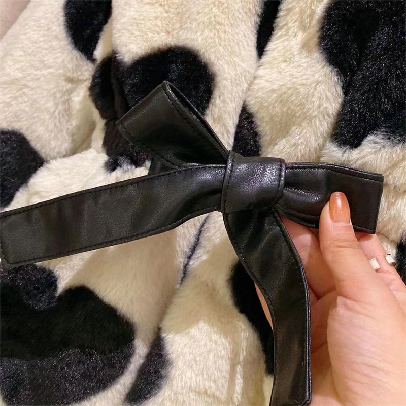 裏地中綿採用ダブルで暖かい ハート柄フェイクファーコート
