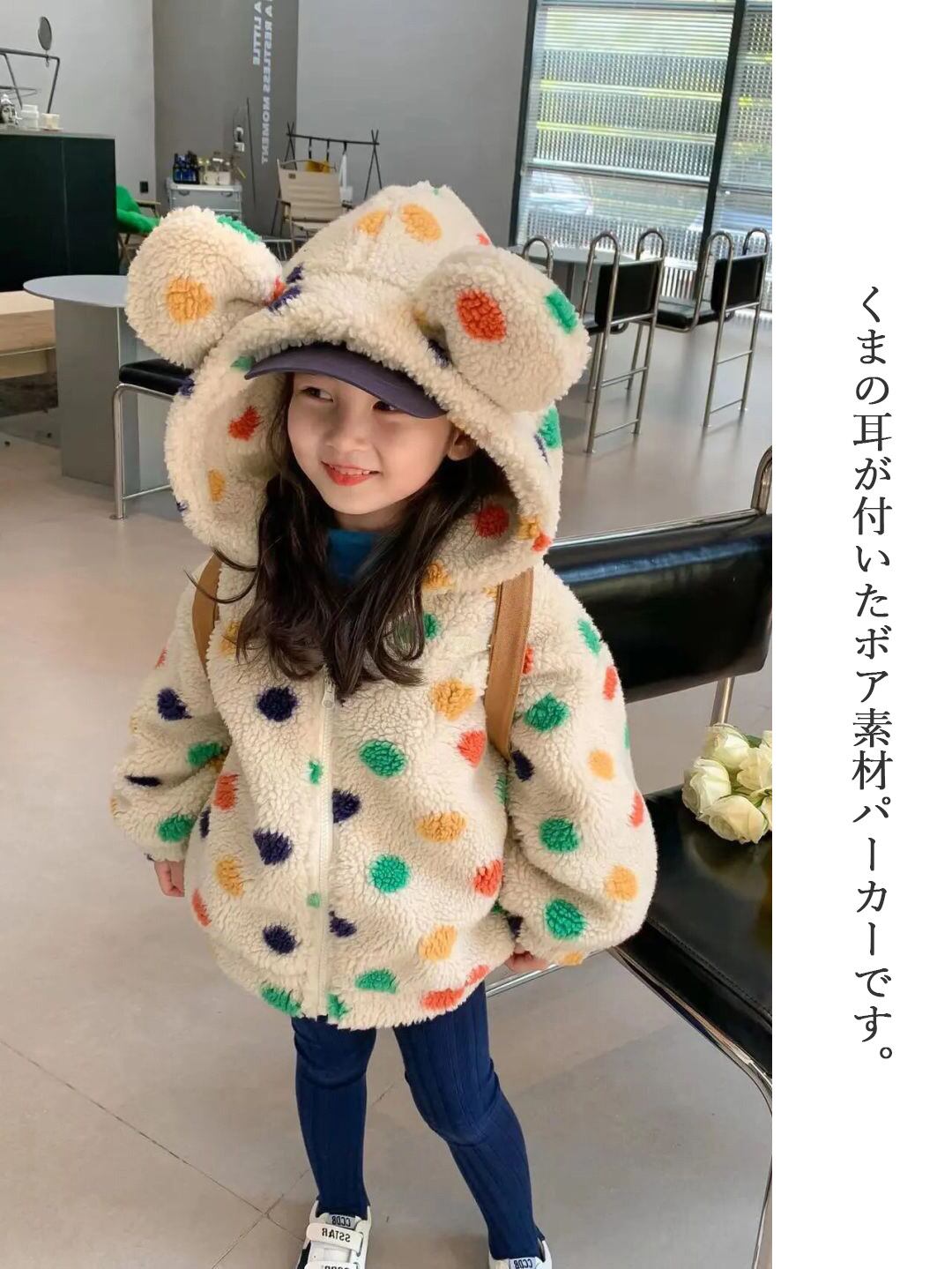 カラフルなドット柄が可愛くてふんわりボリューム感がたまらない ボアパーカー