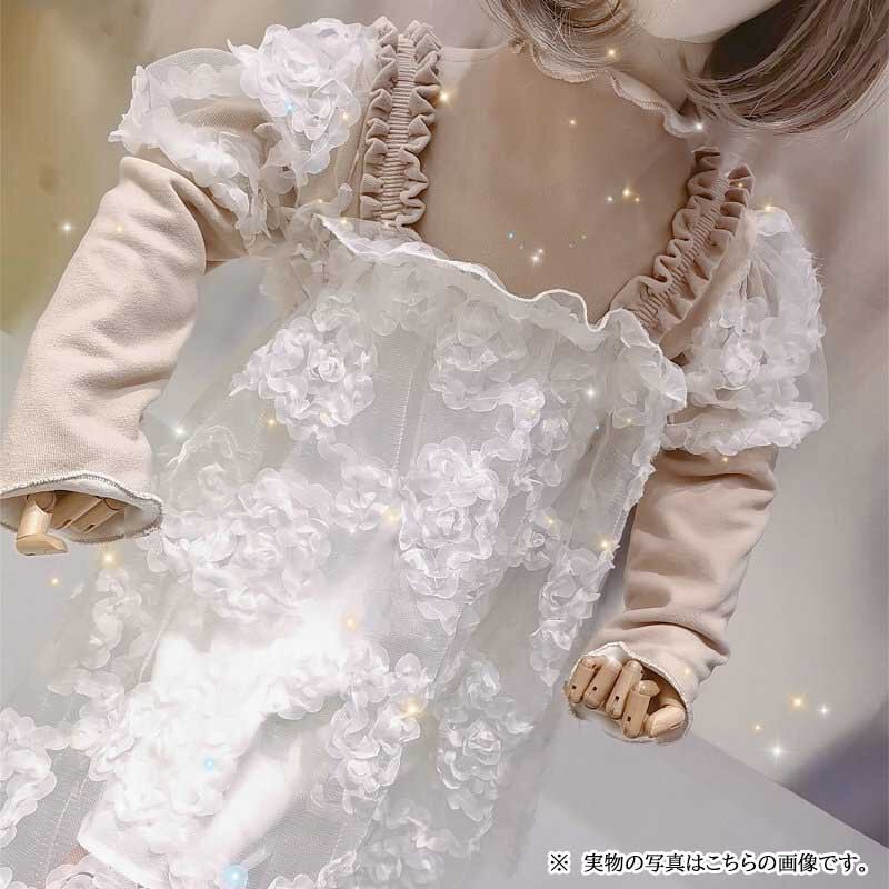 ・中の長袖Tシャツも肩紐フリルのついたデザインでかわいい。