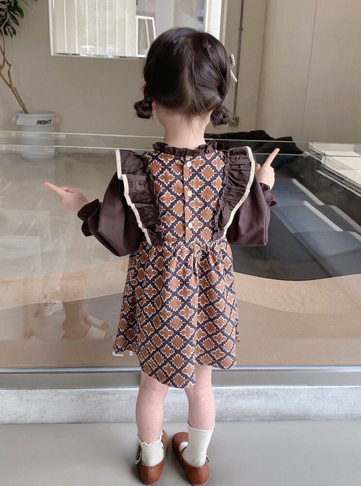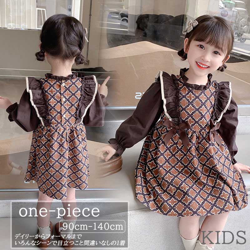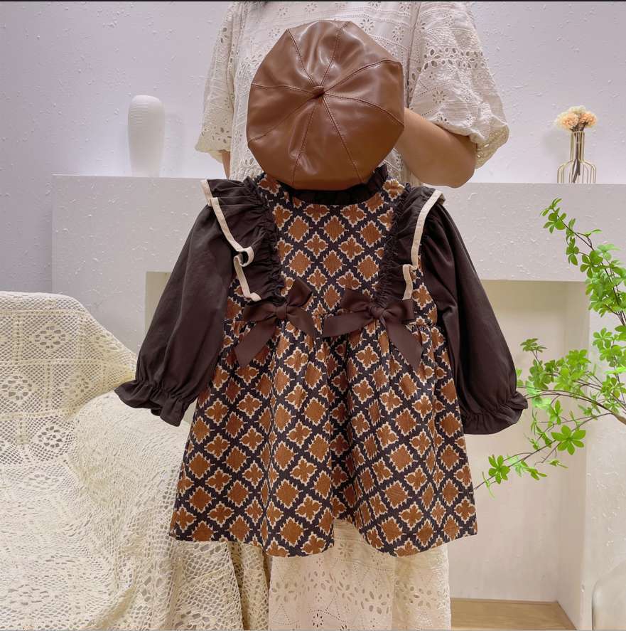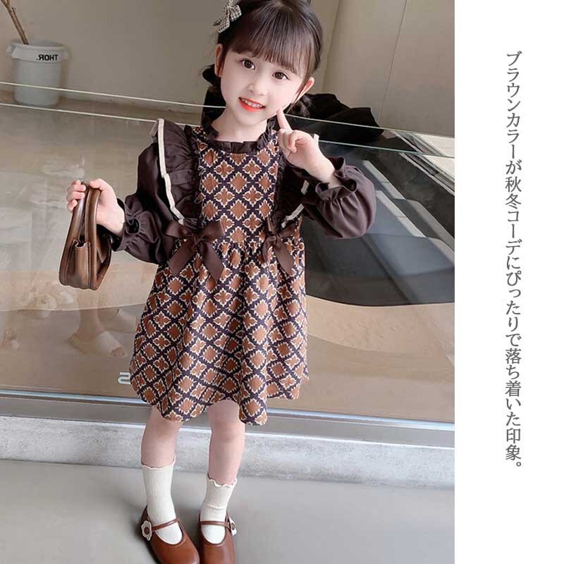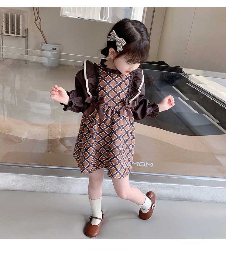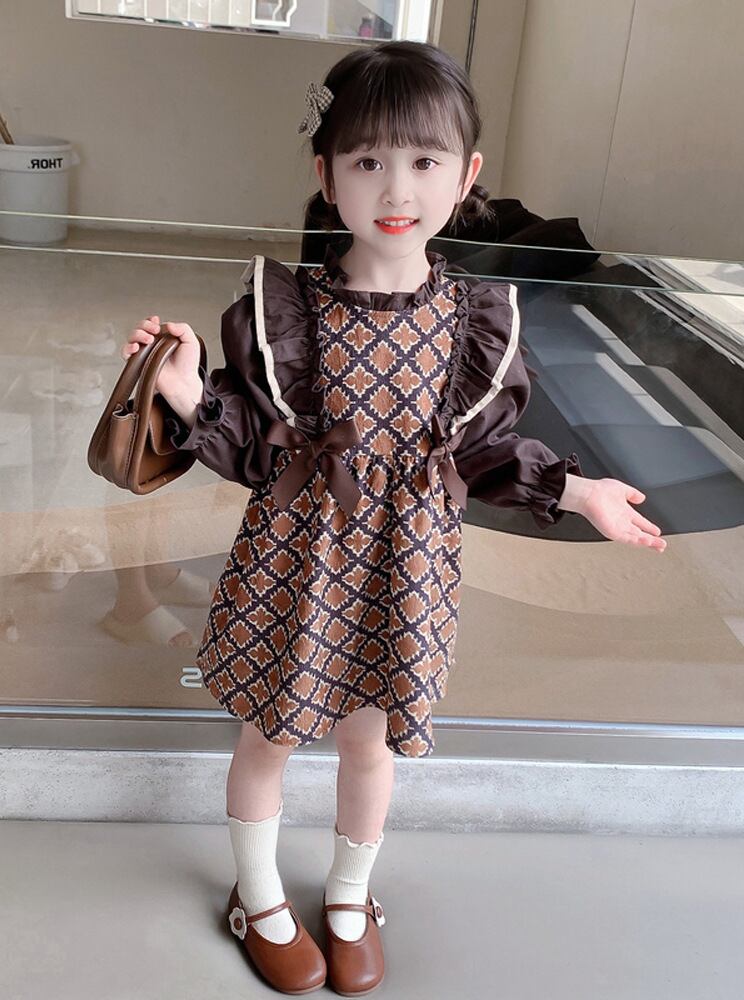 【海外からの取り寄せ】2022新作 韓国子供服 子供 キッズ 女の子 かわいい ワンピース 発表会 レース スカートブラウン #[kids475_19800]【送料込み】【250706】