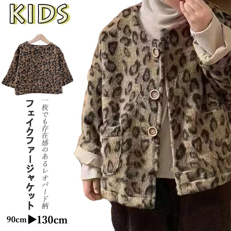 【海外からの取り寄せ】2022新作 韓国子供服 子供 キッズ レオパードジャケット コート 襟なし ヒョウ柄 #[kids472_15800]【送料込み】【250923】