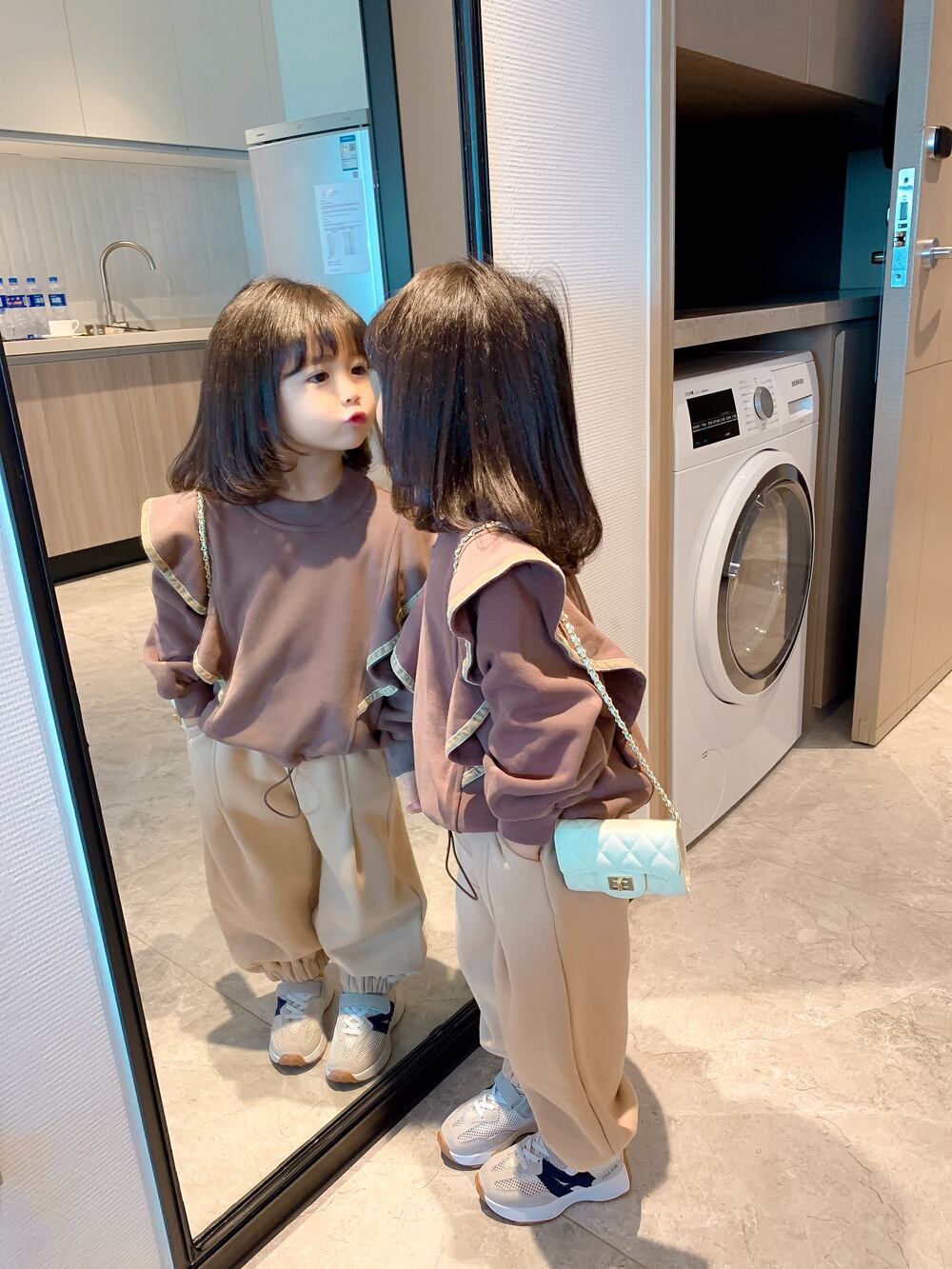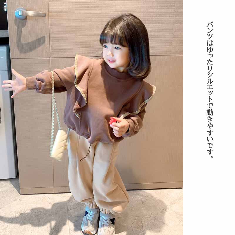 【海外からの取り寄せ】2022新作 韓国子供服 子供 キッズ トップス 肩フリル 長袖 プルオーバー ワイドパンツ ズボン ボトムス #[kids468_13800]【送料込み】【250706】