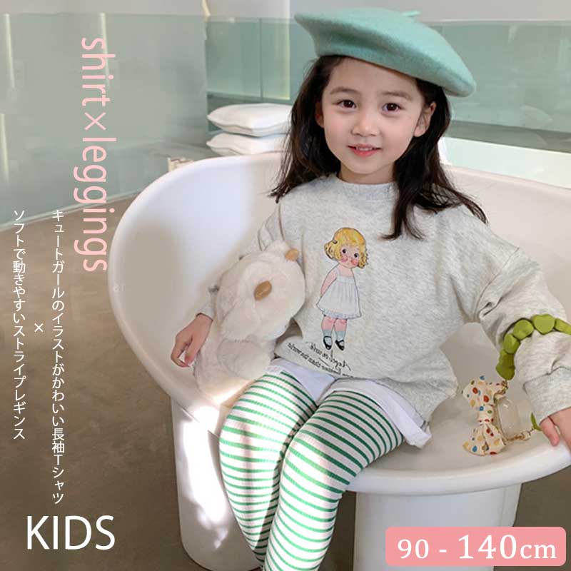 【海外からの取り寄せ】2022新作 韓国子供服 子供 キッズ ボトム トップス セーター 長袖Tシャツ レギンス ストライプ カットソー #[kids447_11800]【送料込み】【250706】