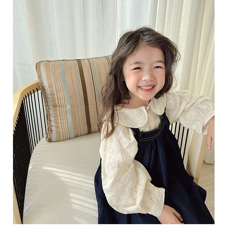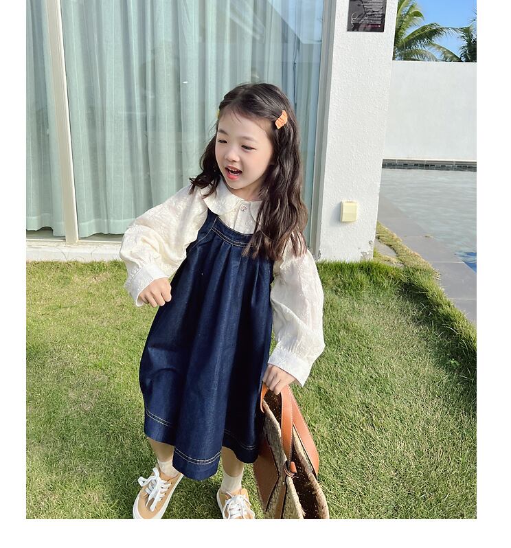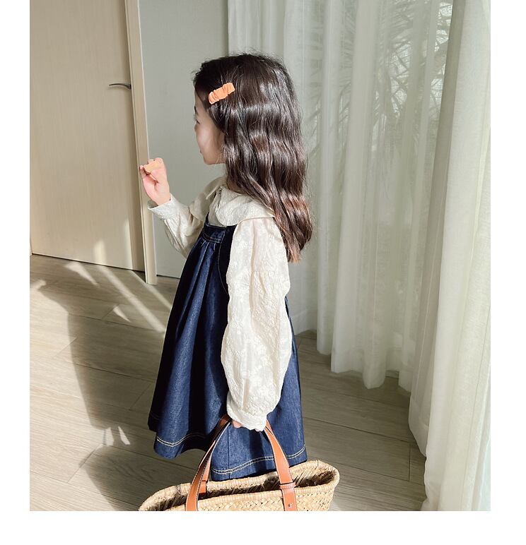 【海外からの取り寄せ】2022新作 韓国子供服 子供 キッズ ワンピース ブラウス 花柄 ホワイト 襟 デニム かわいい 女の子セット #[kids437_14800]【送料込み】【250327】