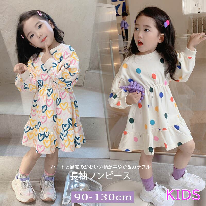 【海外からの取り寄せ】2022新作 韓国子供服 子供 キッズ ワンピース ハート 長袖 風船 かわいい 女の子 裾フリル 秋 冬 春 #[kids433_12800]【送料込み】【250923】