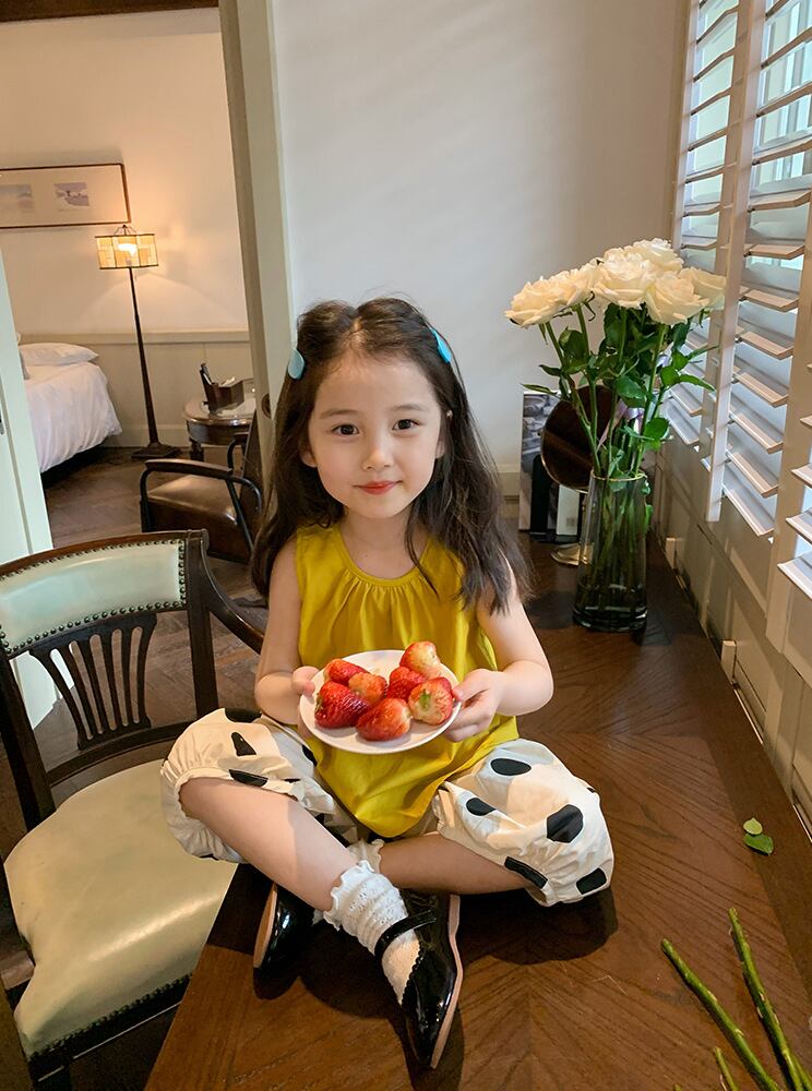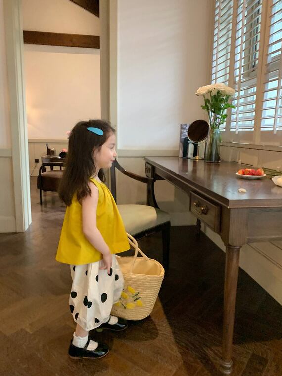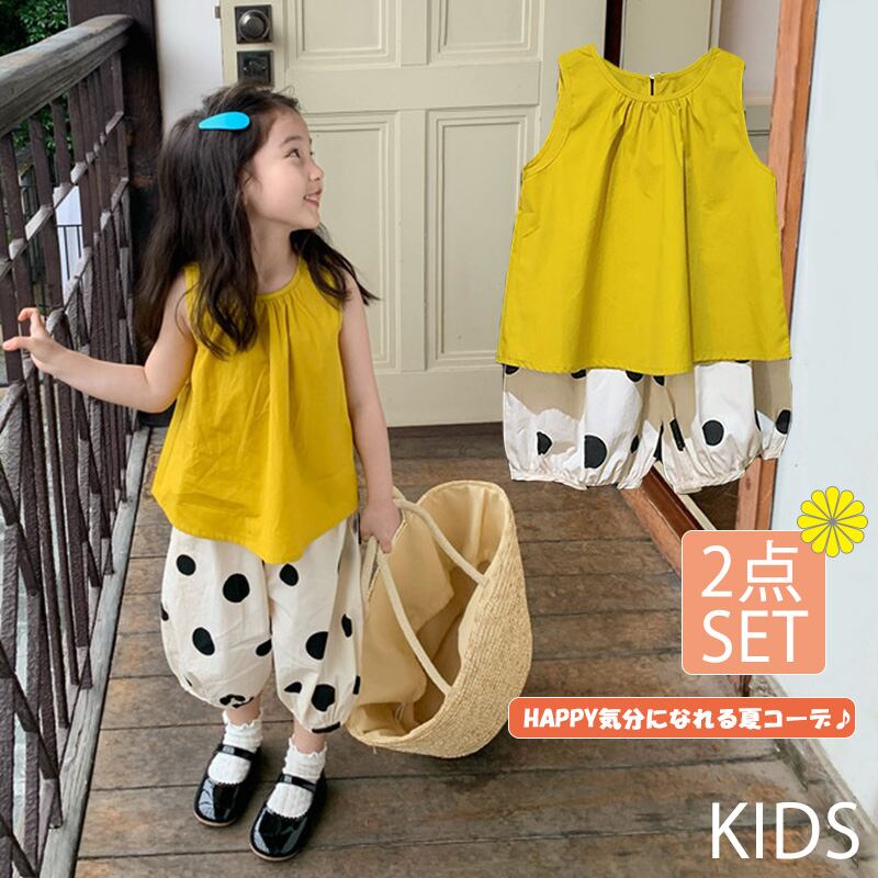 【海外からの取り寄せ】2022新作 韓国子供服 子供 キッズ ノースリーブ 水玉 タンクトップ 上下セット パンツ ウエストゴム #[kids422_14800]【送料込み】【250706】