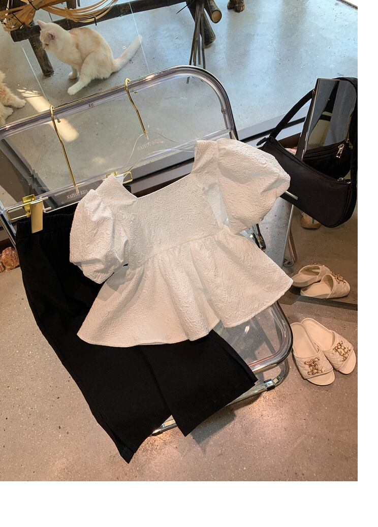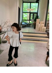 【海外からの取り寄せ】2022新作 韓国子供服 子供 キッズ トップス ボトムス バックリボン フレアパンツ パフ袖 かわいい 半袖 #[kids421_12800]【送料込み】【250706】